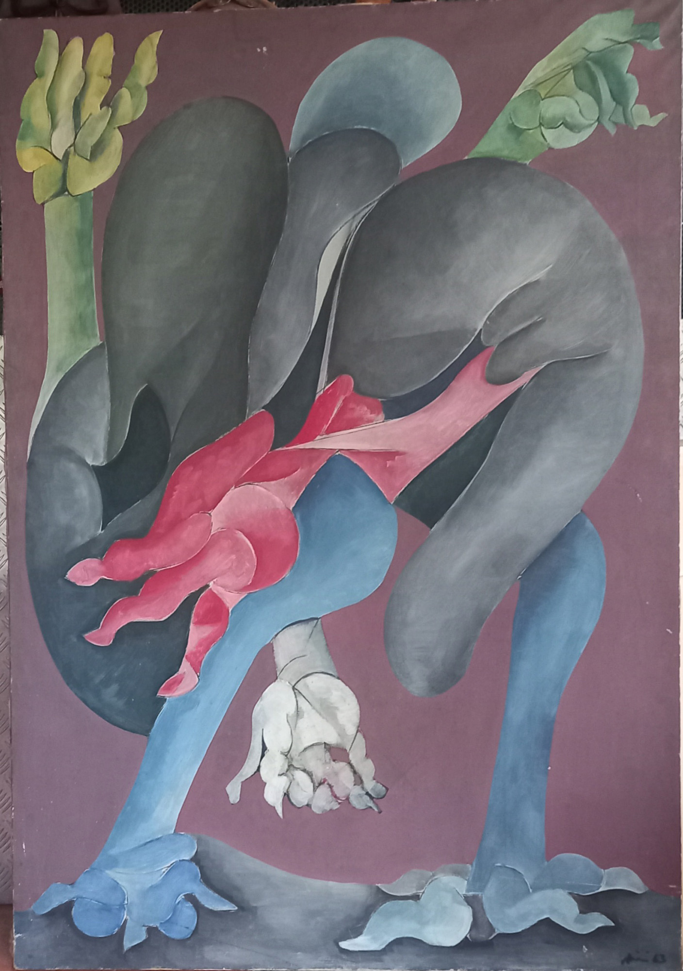 RENATO VOLPINI (1934-2017) COMPOSIZIONE ASTRATTA 1963 - OLIO SU TELA CM.130X95 FIRMATO E DATATO IN BASSO A DS.