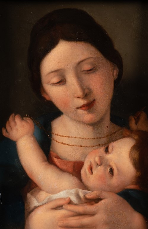 La composizione di questa Madonna col Bambino riprende le fortunate invenzioni di Carlo Cignani, grande pittore bolognese attivo tra la seconda metà del XVII secolo e i primi decenni del XVIII secolo. Il dipinto - in ottimo stato di conservazione, piacevole soggetto e fine qualità - è inoltre arricchito da una pregiata e antica cornice bolognese in legno dorato.