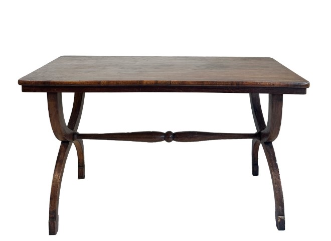 Precedente Lotto 138 Successivo Guidoriccio Casa d'Aste - Via ferraris 128, 52100 AREZZO Arredi, dipinti antichi e Arte moderna Sessione unica mercoledì 21 febbraio 2024 ore 15:00 (UTC +01:00) Tavolino basso in noce Tavolino basso in noce con gambe a faldistorio cm 90x45x50