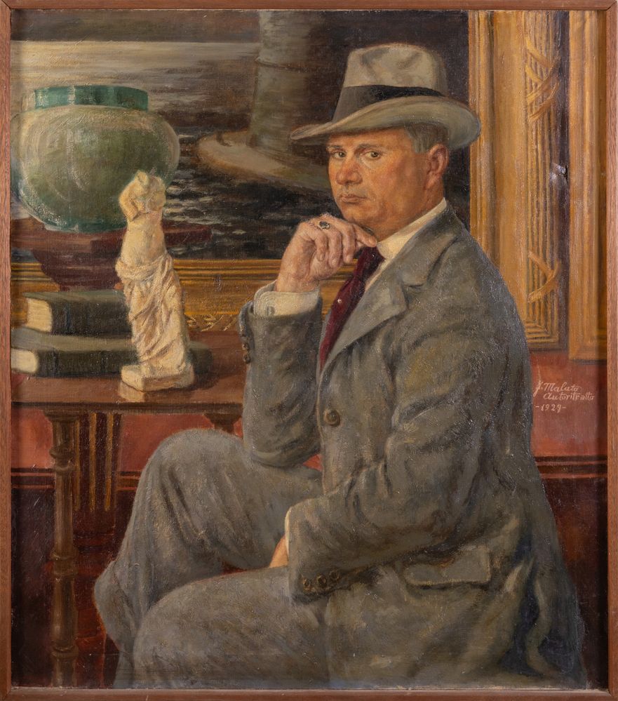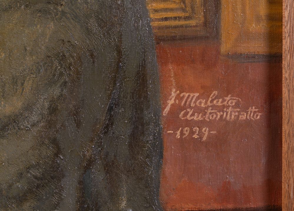 FRANCESCO MALATO (XX secolo) "Autoritratto". Olio su tela. Cm 95x83. Opera firmata e datata in centro a sinistra F. Malato, Autoritratto, 1929.