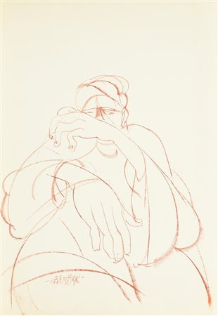 GIANBAR (Gianni Baretta) PAURA carboncino su carta, cm 50,5x35 firma sul...