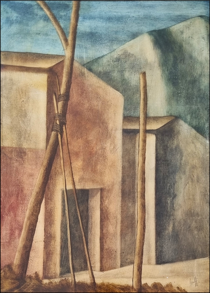 SCUFFI MARCELLO Quarrata 1948 - 2021 "Senza titolo" Olio su tela cm 50x70. Firmato sul fronte in basso a destra, e sul retro. Autentica su foto a cura di Luciano Scuffi.