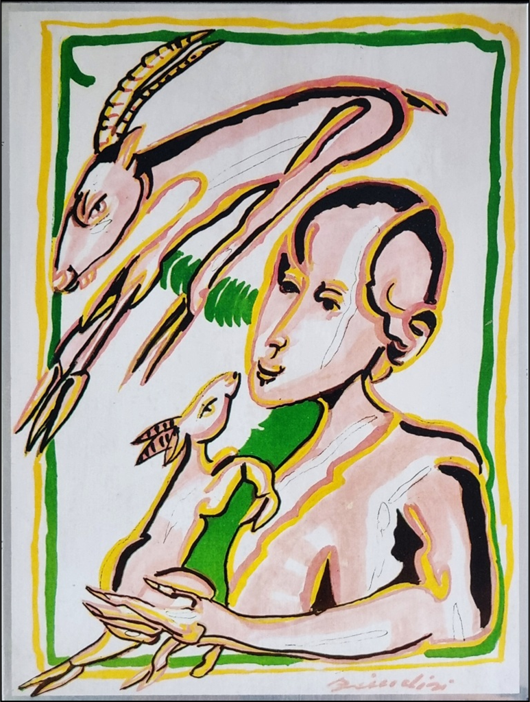 BRINDISI REMO Roma 1918 - Lido di Spina 1996 "Senza titolo" Serigrafia su lastra di metallo cm 18x24. Firmata sul fronte in basso a destra.