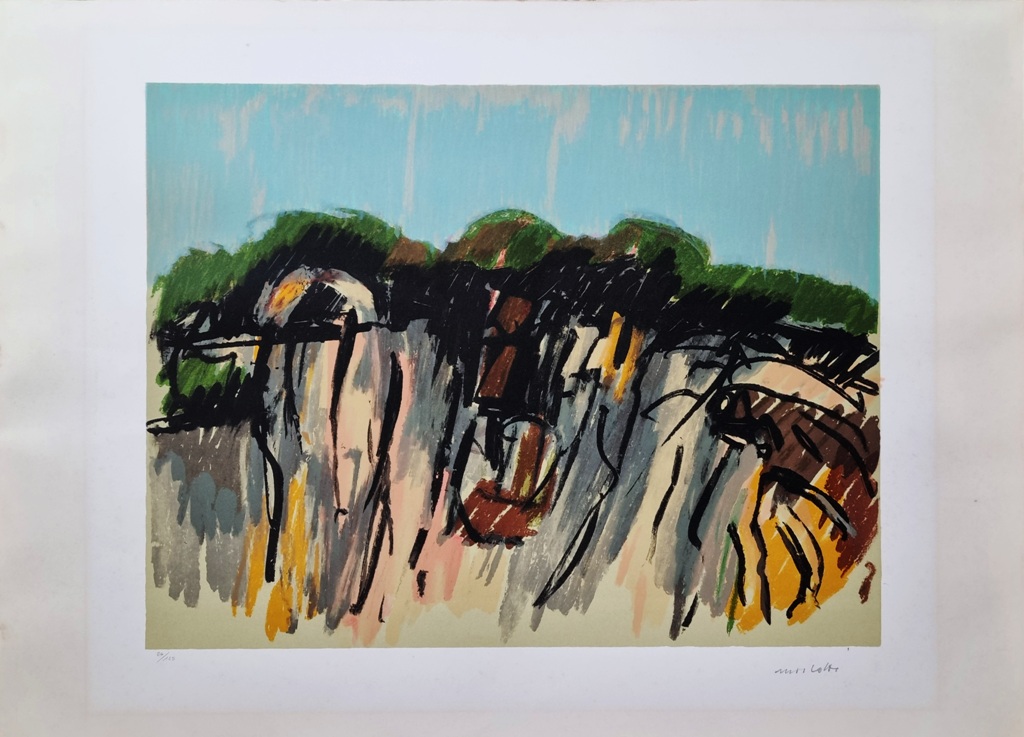 MORLOTTI ENNIO Lecco 1910 - Milano 1992 "Le grandi rocce" Litografia su cartoncino cm 46x38, del 1985. Firmata sul fronte in basso a destra, tiratura 26/125 a sinistra. Certificato di autenticità a cura della Galleria d'Arte Angolare.