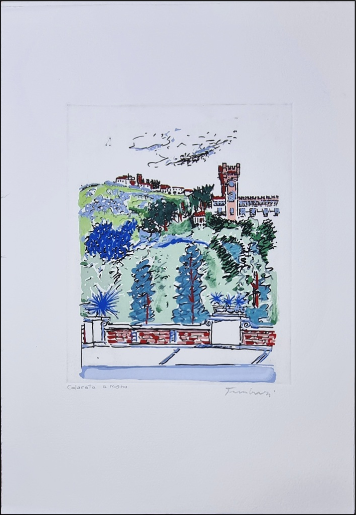 TAMBURI ORFEO Jesi 1910 - Parigi 1994 "Senza titolo" Incisione serigrafica acquerellata a mano, su carta pregiata, cm 35x50, pezzo unico. Firmata sul fronte in basso a destra, dicitura "ritoccata a mano" a sinistra.