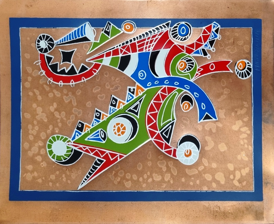 MASTROIANNI UMBERTO Fontana Liri 1910 - Marino 1998 "Europa 1990" Smalto su rame cm 30x24. Firmato sul fronte in basso a destra ed in verticale in alto a destra, tiratura 38/50 a sinistra. Opera pubblicata a pag. 125 del saggio di Floriano De Santi "Umberto Mastroianni, artista e intellettuale del XX secolo".