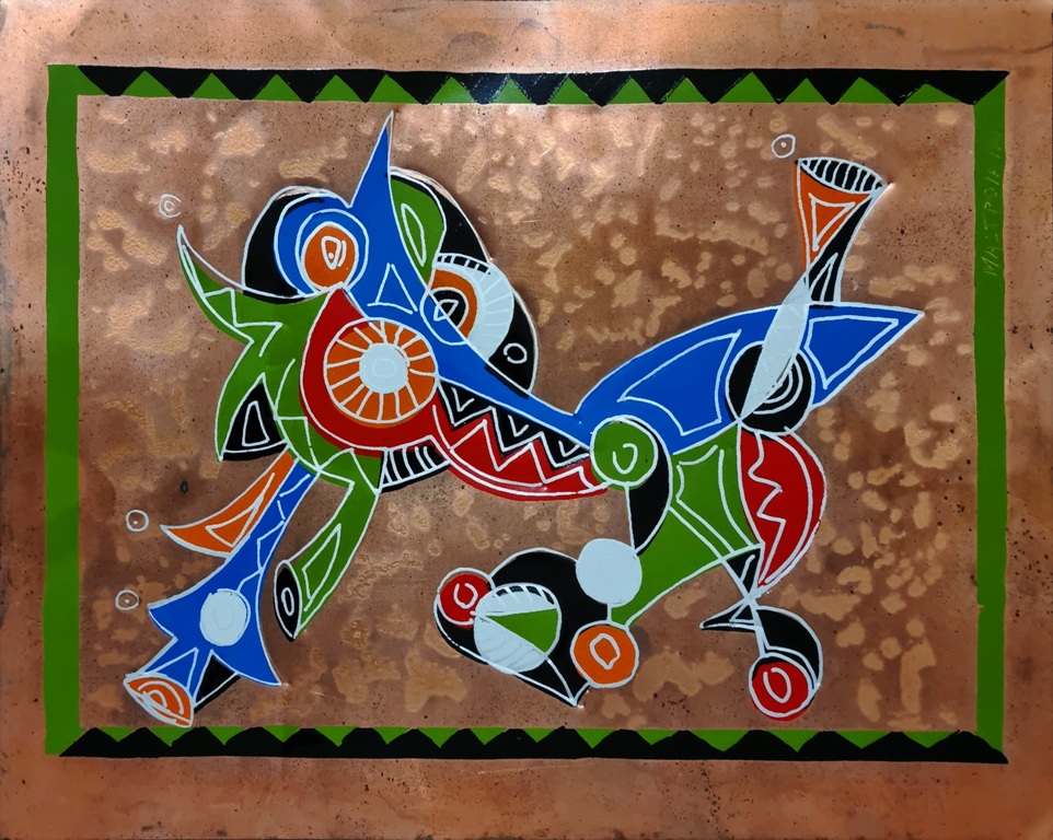 MASTROIANNI UMBERTO Fontana Liri 1910 - Marino 1998 "Europa 1990" Smalto su rame cm 30x24. Firmato sul fronte in basso a destra ed in verticale in alto a destra, tiratura 38/50 a sinistra. Opera pubblicata a pag. 125 del saggio di Floriano De Santi "Umberto Mastroianni, artista e intellettuale del XX secolo".