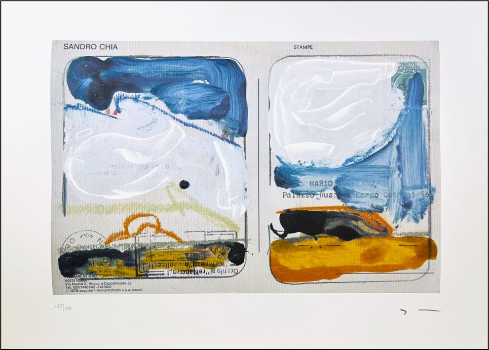 SCHIFANO MARIO Libia 1934 - Roma 1998 "Senza titolo" Serigrafia materica cm 70x50. Firma dell'artista e timbro a secco "Schifano" in basso a destra, tiratura a sinistra.