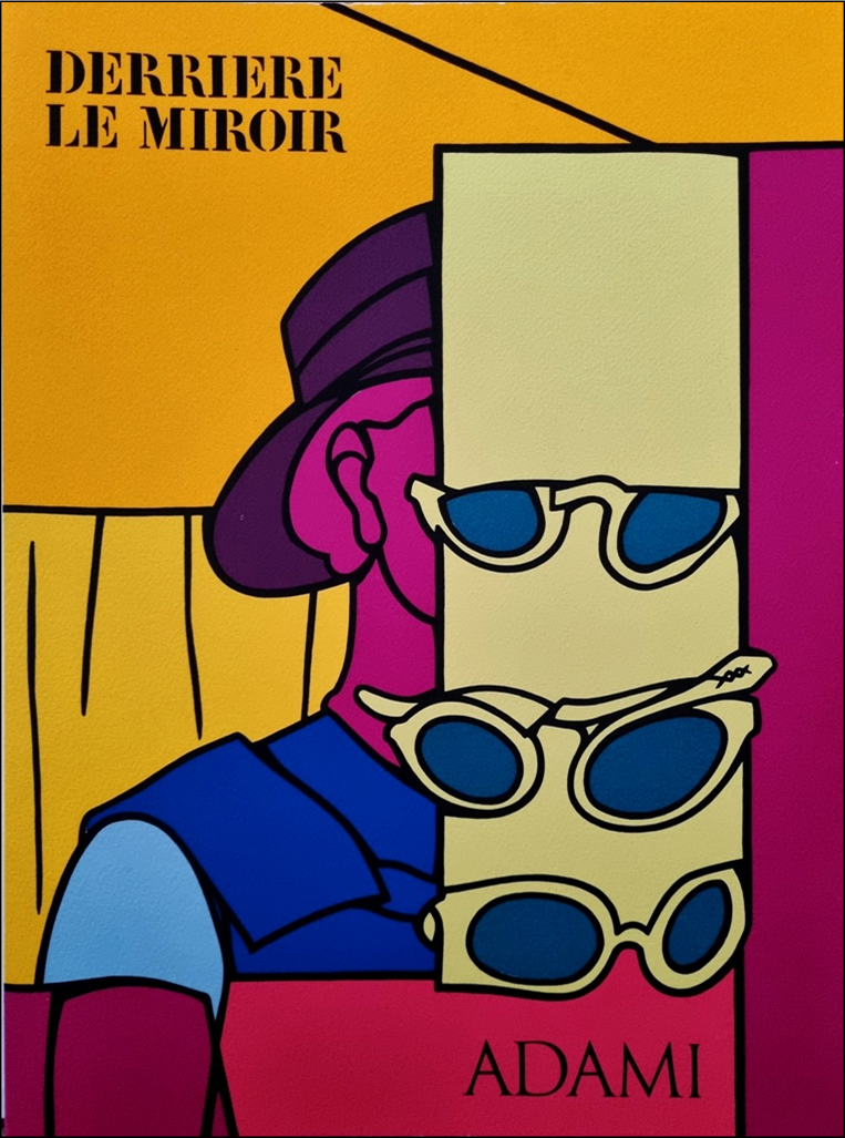 ADAMI VALERIO Bologna 1935 "Derriere Le Miroir" Libro contenente n. 3 litografie originali (pagg. 4 e 5, pagg. 12 e 13 e pagg. 20 e 21), numerato e firmato dall'artista, in 150 esemplari su pergamena di Arches.