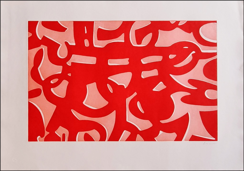 ACCARDI CARLA - Trapani 1924 - Roma 2014 "La ricerca del colore" Acquaforte acquatinta cm 100x70. Firmata sul fronte in basso a destra, tiratura P.A. e timbro a secco a sinistra. Sul retro timbro di garanzia a cura della Grafica d'Arte Lombardi.