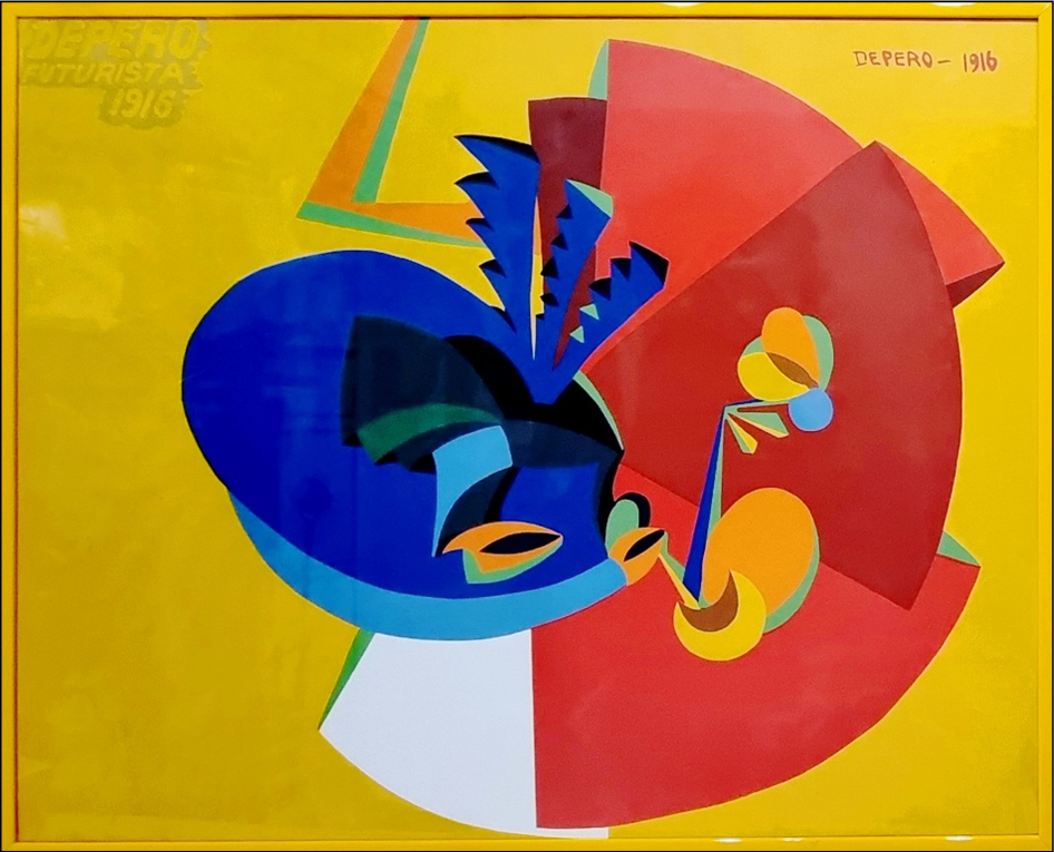 DEPERO FORTUNATO Trento 1892 - 1960 "Movimento d'uccello" Serigrafia postuma su tela, cm 146x115 (edizione su autorizzazione degli eredi con il patrocinio del Museo di Rovereto), realizzata in 250 esemplari. Sul fronte in basso a destra, timbro a secco a cura del "Museo Depero Rovereto", tiratura al verso.