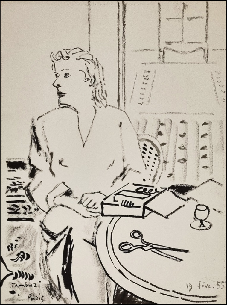 TAMBURI ORFEO Jesi 1910 - Parigi 1994 "Renèe" Tecnica mista su cartoncino cm 24x33 del 1955, corredata di passepartout. Firma e luogo sul fronte in basso a sinistra, data a destra. Autentica su foto a cura del Maestro.