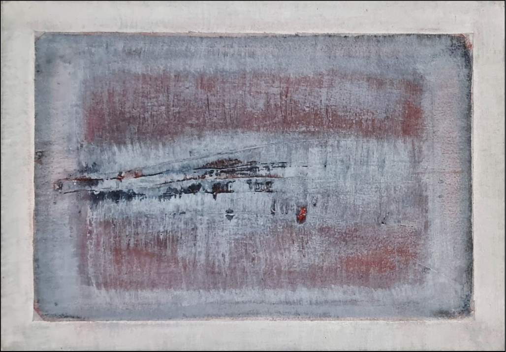 STRAZZA GUIDO Grosseto 1922 "Orizzonte" Tempera su cartone cm 39x27, del 1999. Autentica su foto a cura dell'Artista. Foto del Maestro con l'opera.
