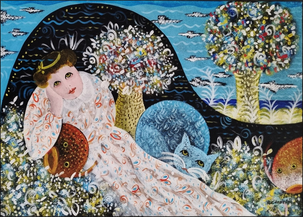 CARDELLI RAIMONDO Marsiglia 1938 - Lucca 2008 "La mia isola" Olio su tela cm 70x50. Firmato sul fronte in basso a destra. Sul retro titolo e firma per autentica.