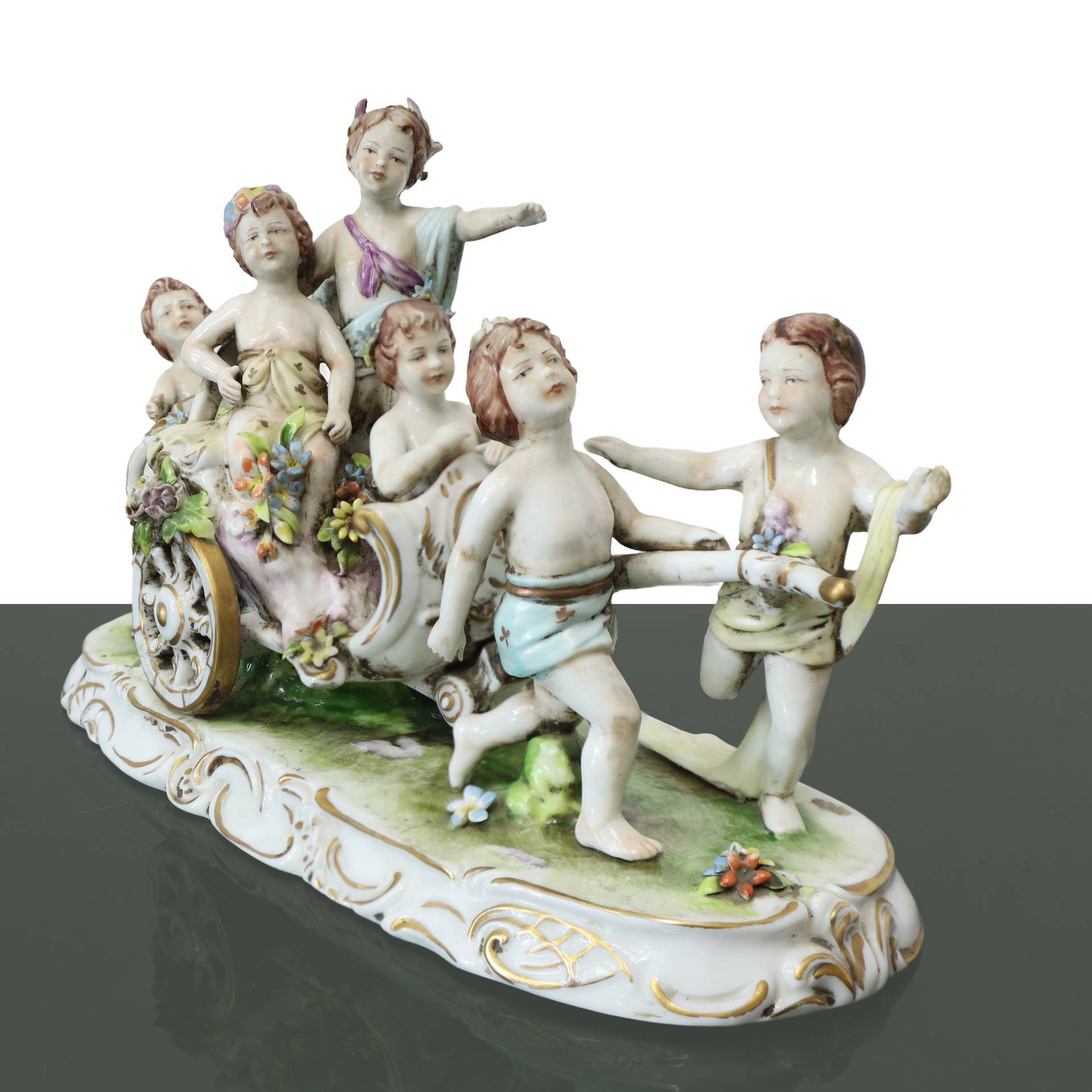 Porcelain Meissen - Carro con Putti in porcellana, nineteen° secolo