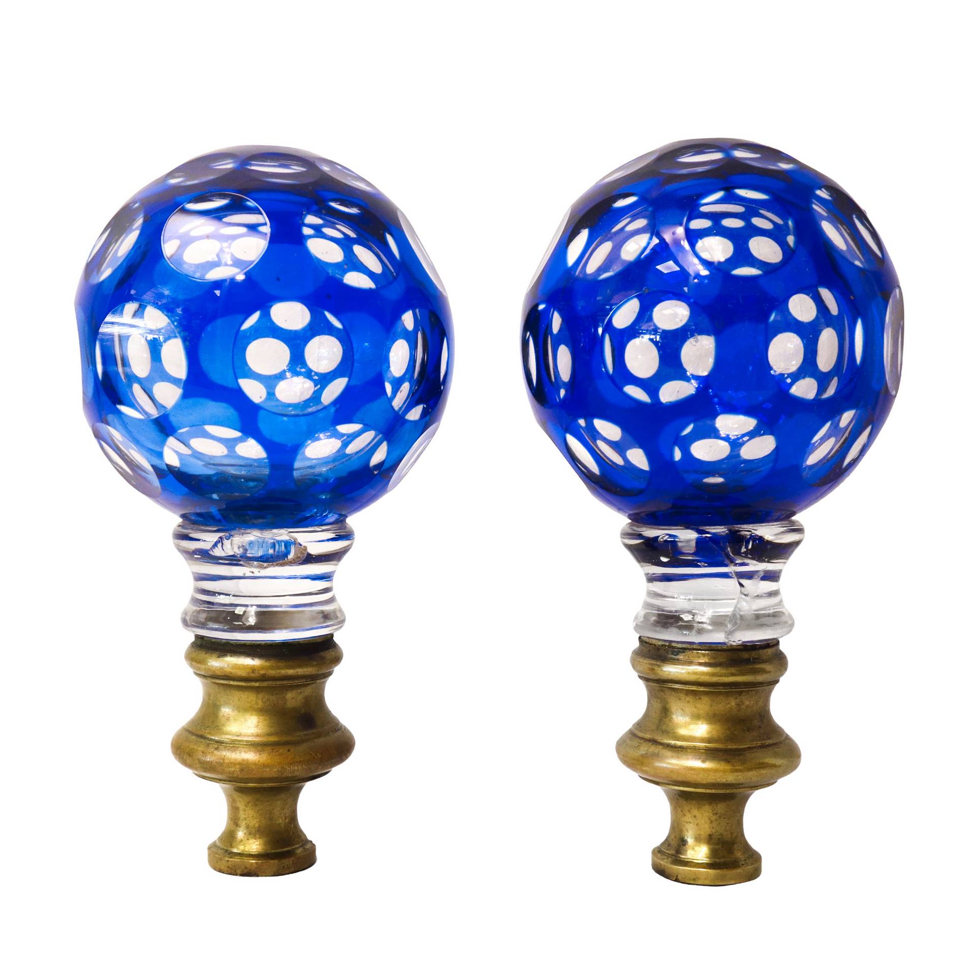 Coppia di pomoli in vetro di Murano di forma sferica colore blu, nineteen° secolo