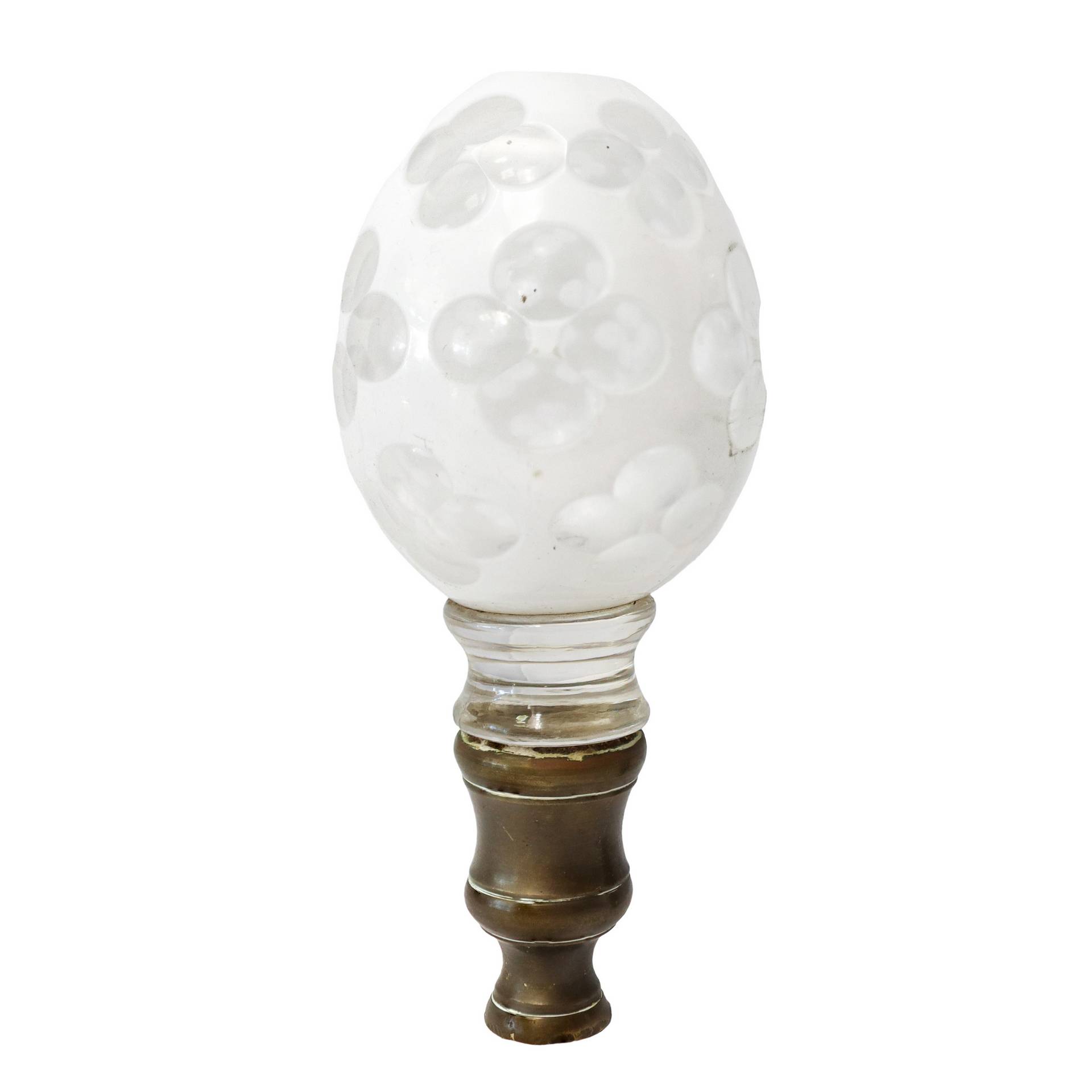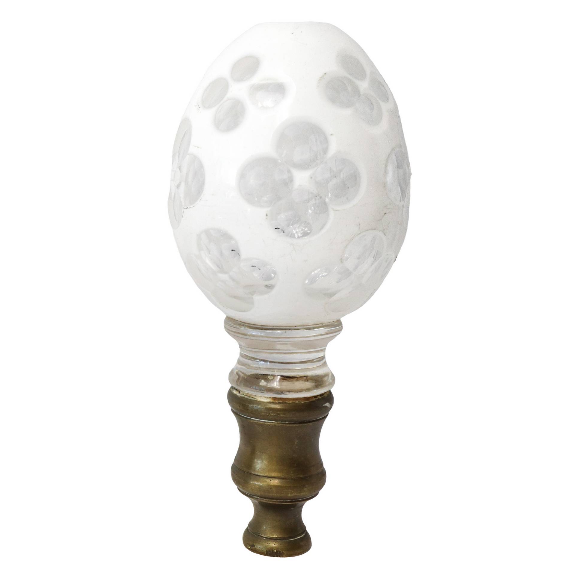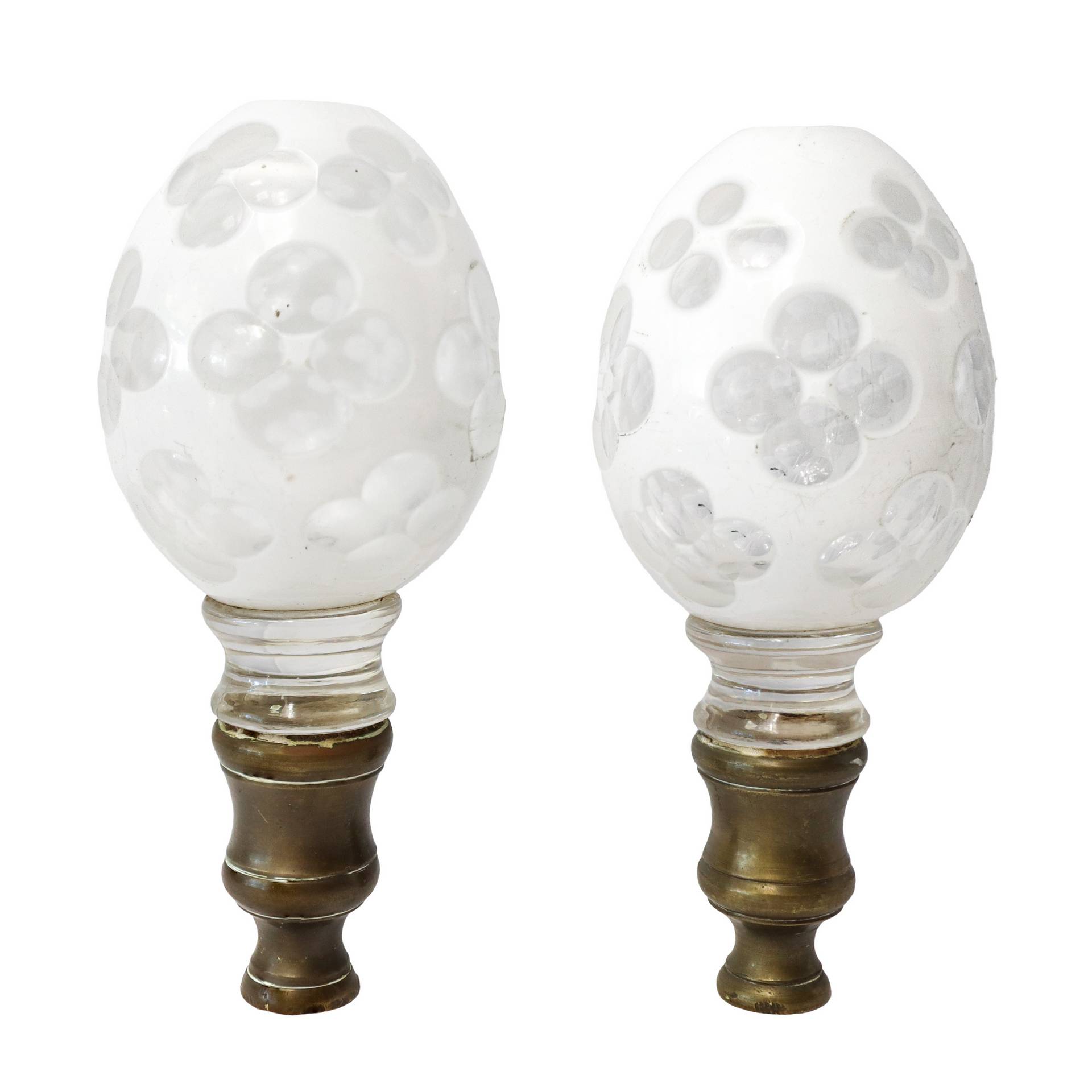 Coppia di pomoli in vetro bianco lattimo con decorazioni a fiori, nineteen° secolo H cm 20x9