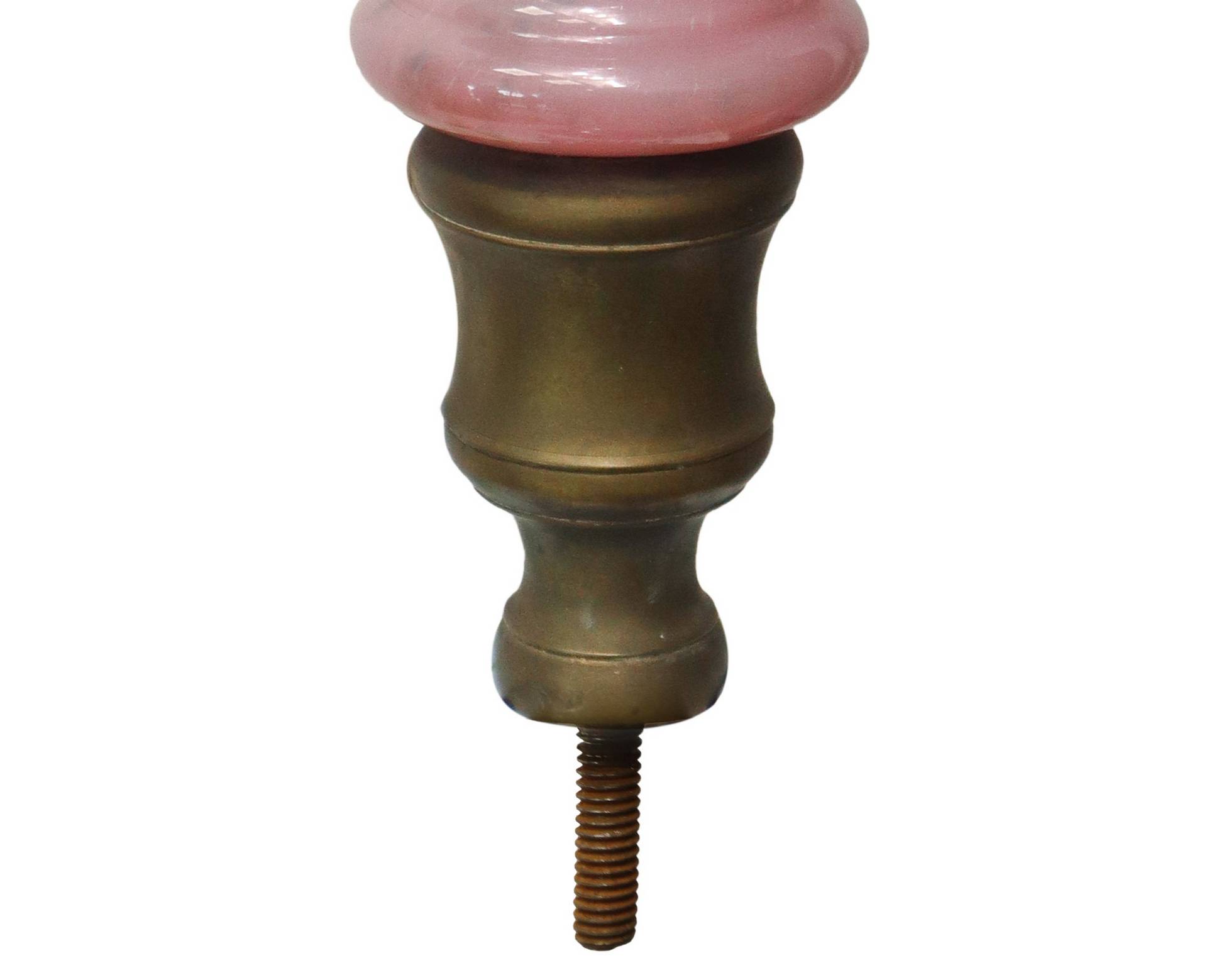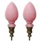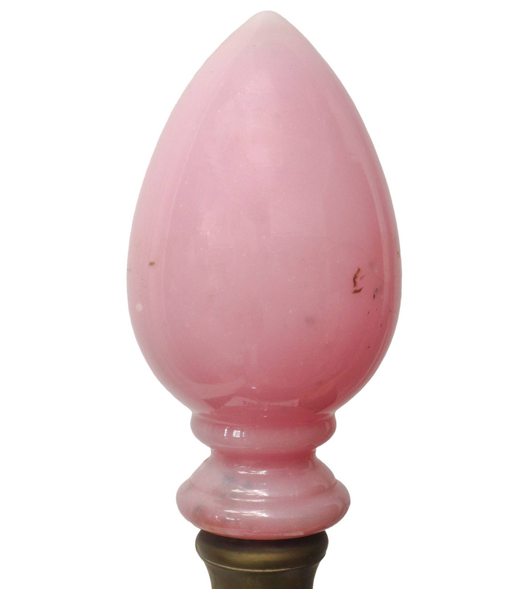 Coppia di pomoli in vetro di Murano di forma oblunga colore rosa, fine 19° secolo H cm 25x8,5 Decorazioni dorate sbiadi