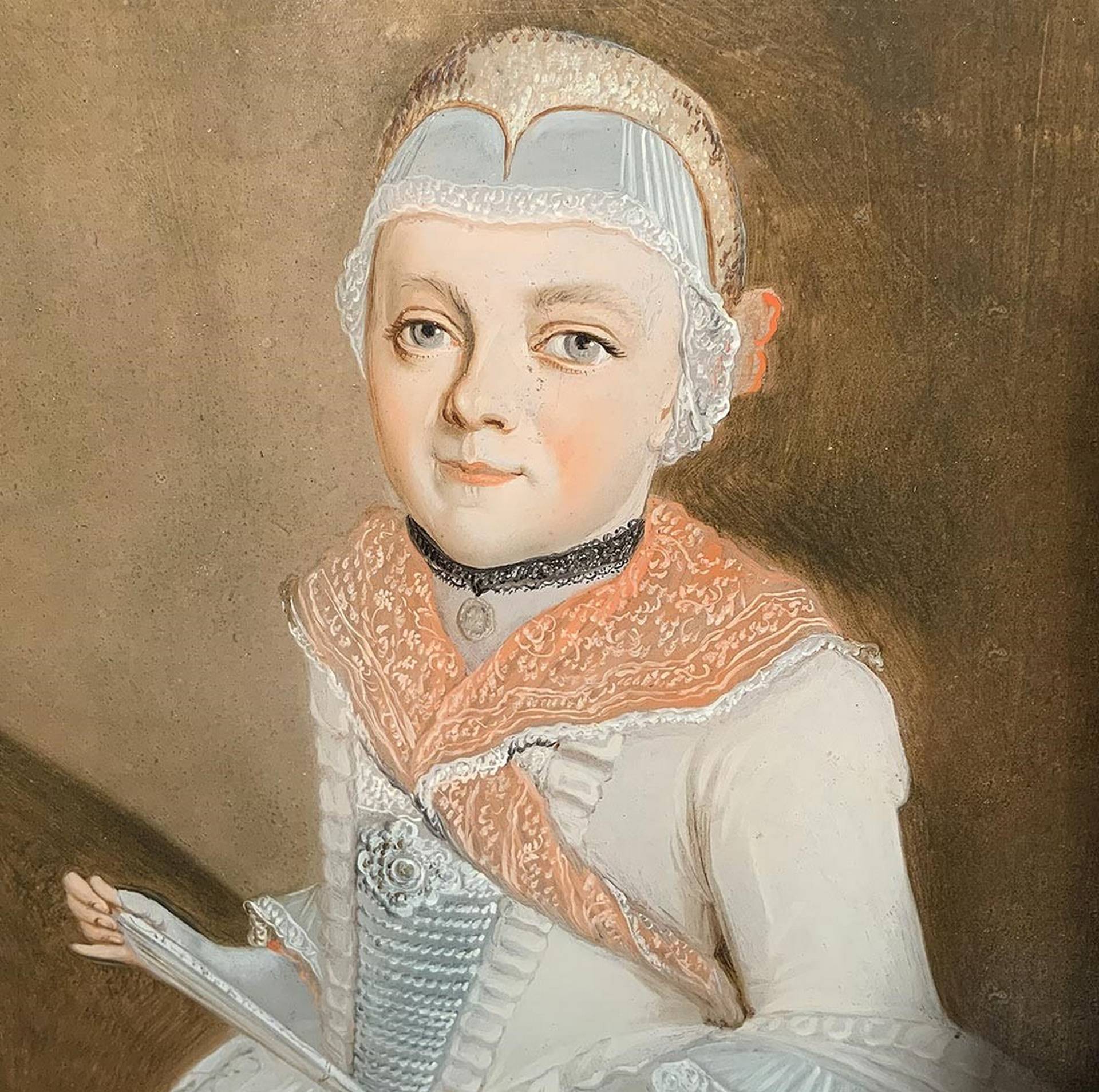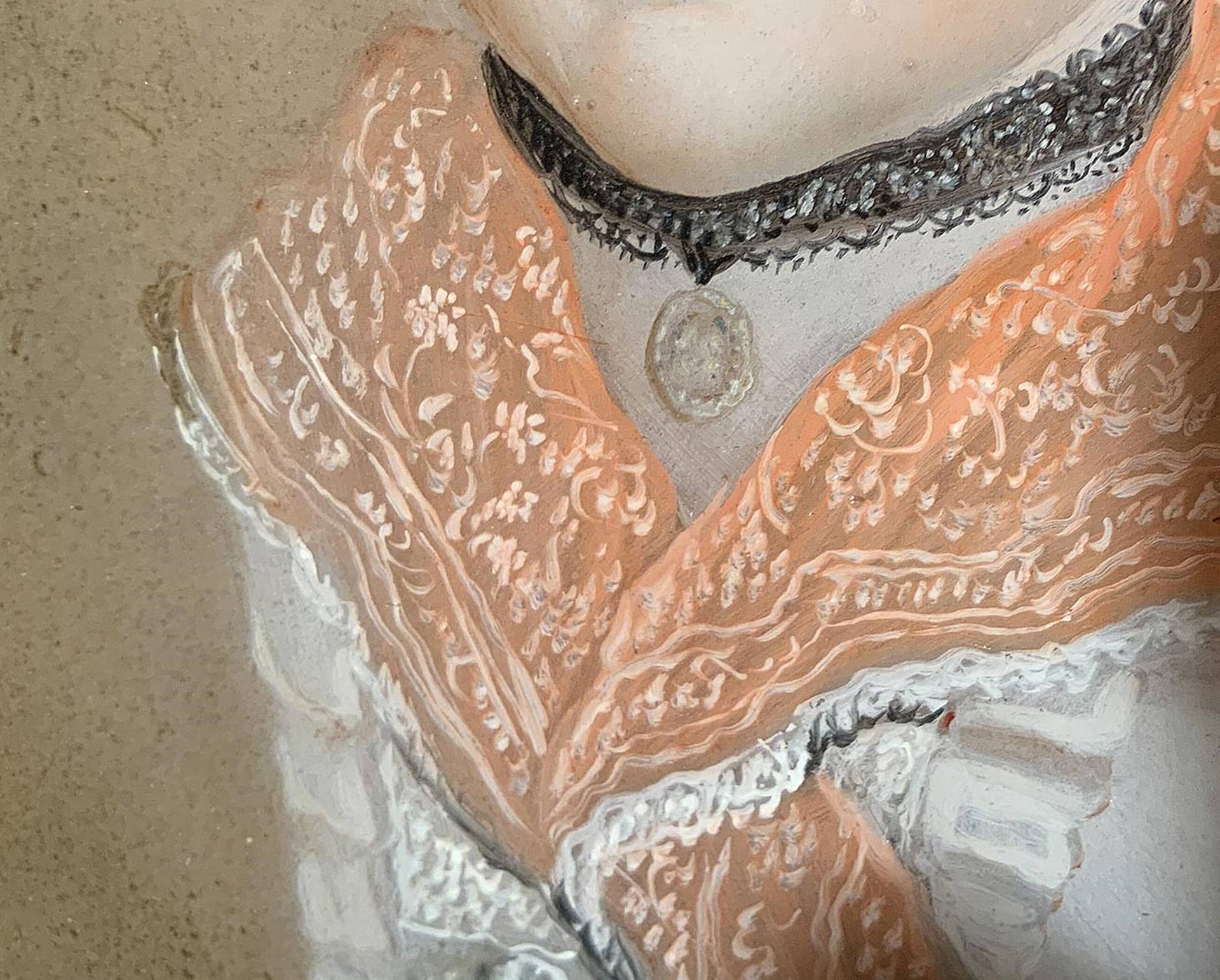 Infanta , 18° secolo cm 25 x cm 20 tempera su vetro Pittore del XVIII secolo. In cornice antica.