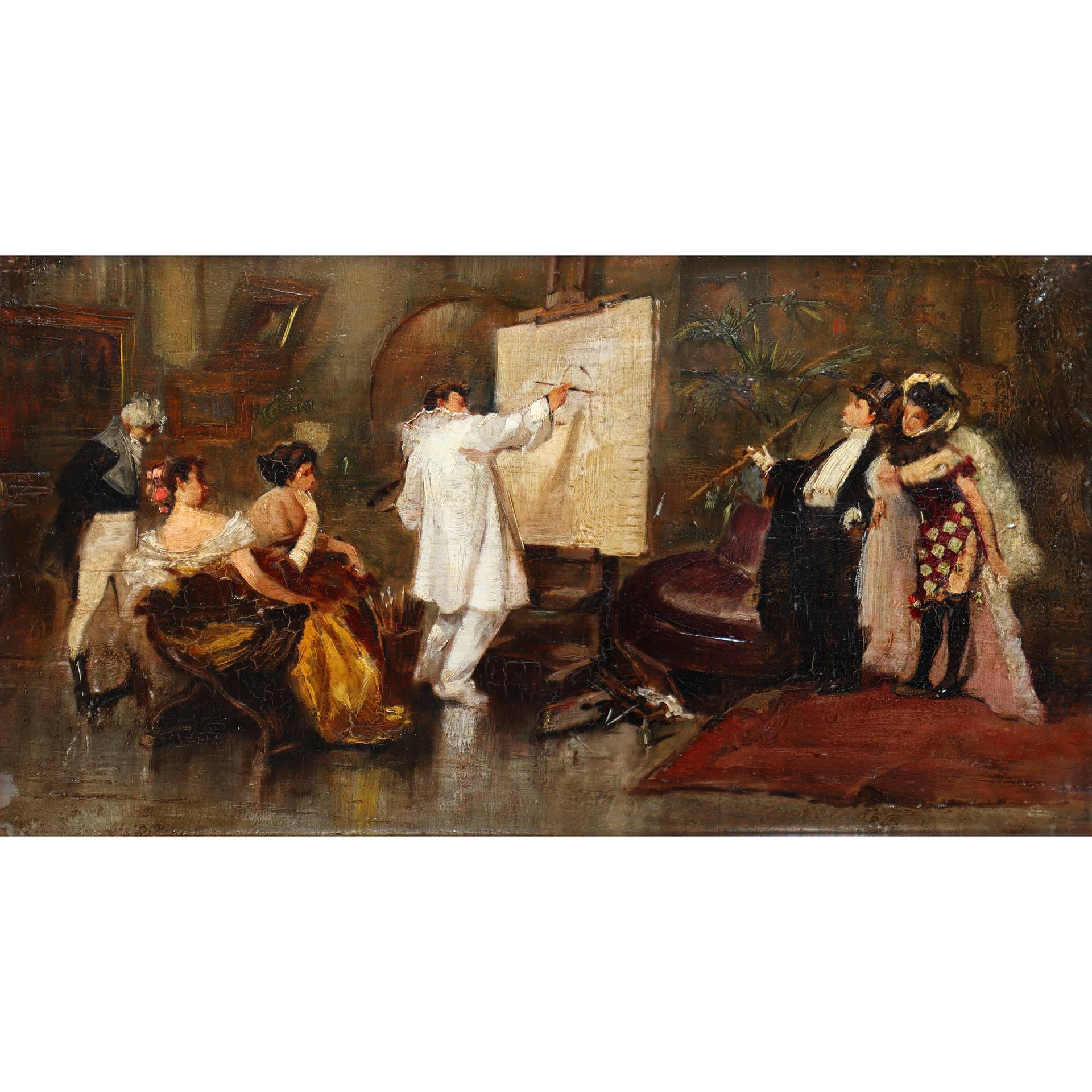 Pittore che dipinge un quadro con astanti, nineteen° secolo