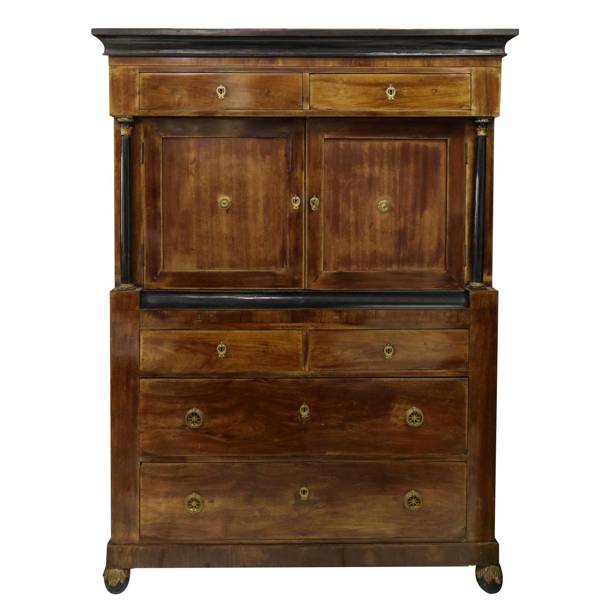 Chiffoniera in legno di noce, primi 19° secolo h 172 cm la 125 cm, L 50 cm Unico corpo, finale a cappello mezza canna,