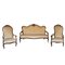 Salotto composto da 2 poltrone e un divano tappezzato in velluto beige