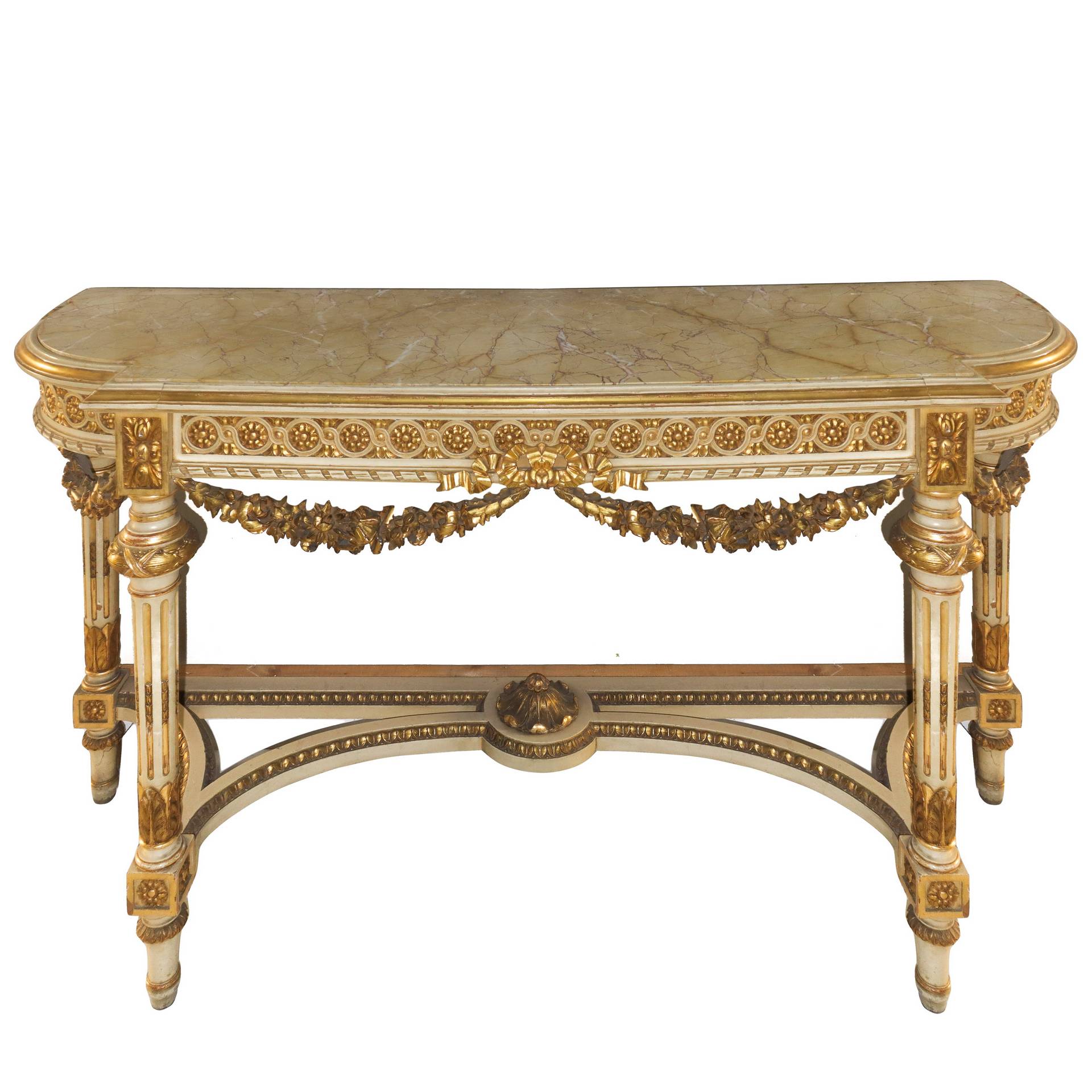Grande console in legno laccato e dorato, fine 19° secolo H cm 104 x L 187 x P 56 Festoni floreali dorati applicati su