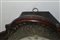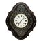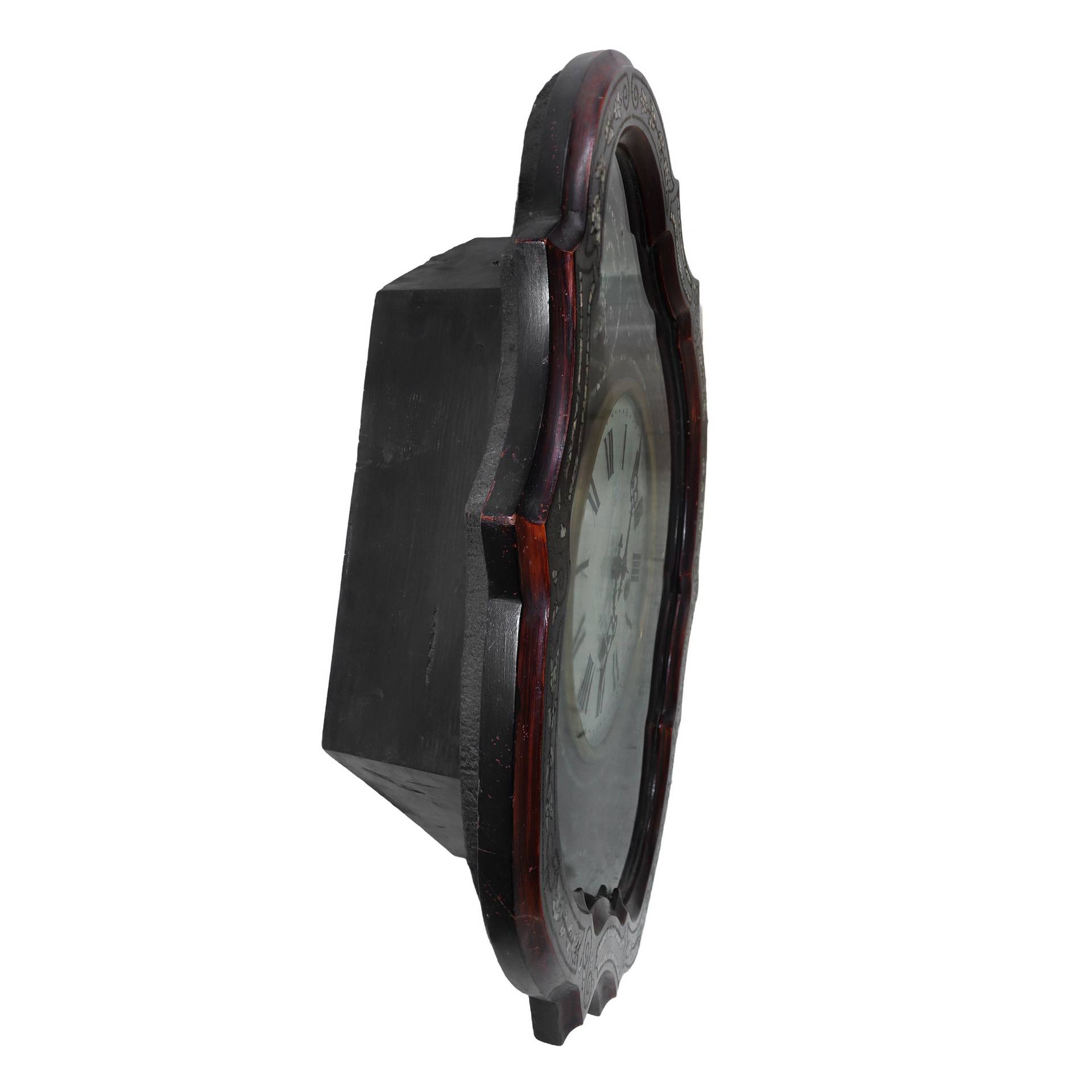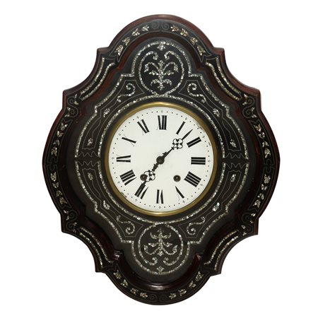 Pendolo da parete a occhio di bue, quadrante in porcellana con numeri romani, scatola in legno intarsiato a motivi flore