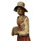 Donna con sacco in mano in legno policromo, 20° secolo H cm 43,5x12 Base in pietra. Superficie leggermente scalfita. Ma