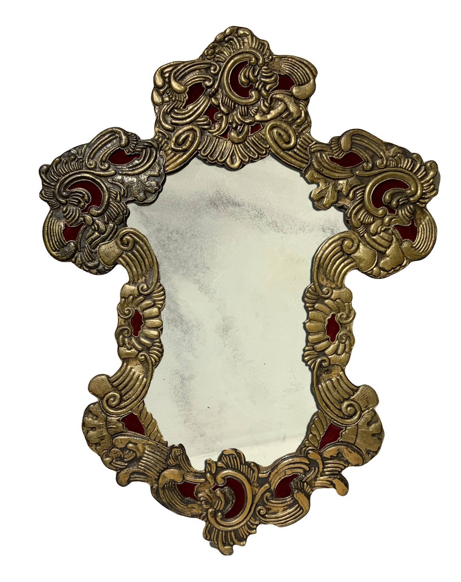 Specchiera con struttura in legno rivestita con lamina in argento sbalzato, 20° secolo