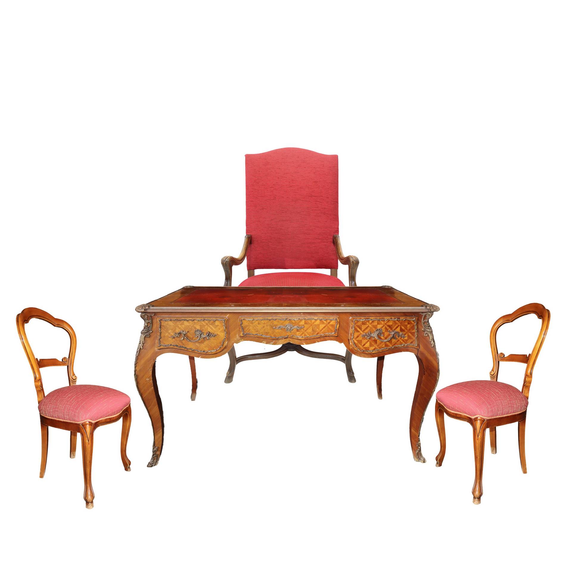 Lotto 157 | Studio composto da scrittoio Bureau Plat in legno bois de rose con poltrona e due sedie, Napoleon II