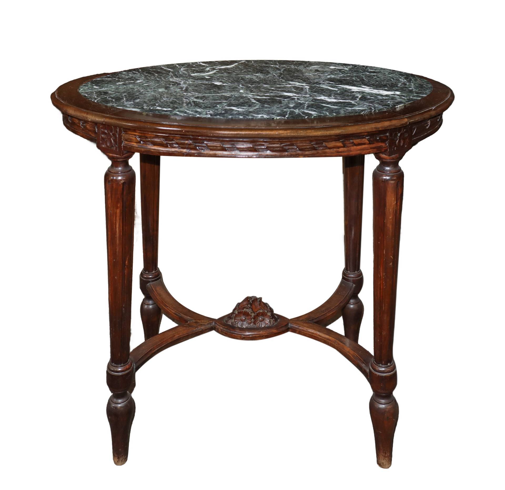 Tavolinetto con marmo al piano grigio scuro screziato bianco, fine 19° secolo H cm 73, diametro cm 77
