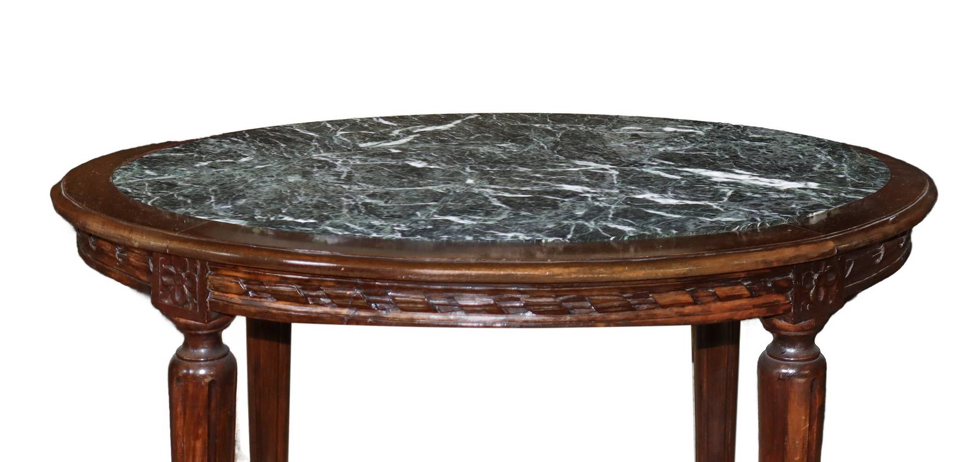 Tavolinetto con marmo al piano grigio scuro screziato bianco, fine 19° secolo