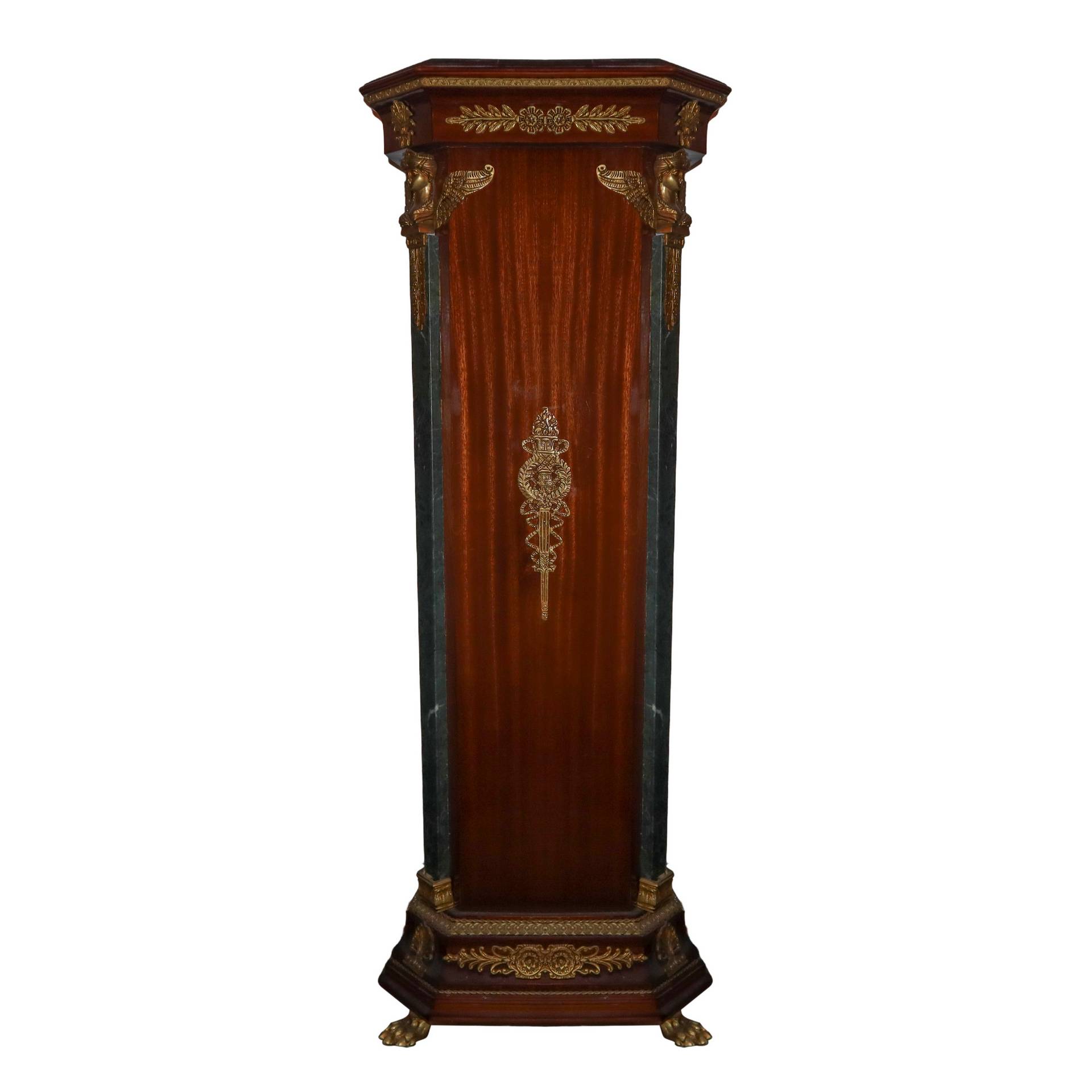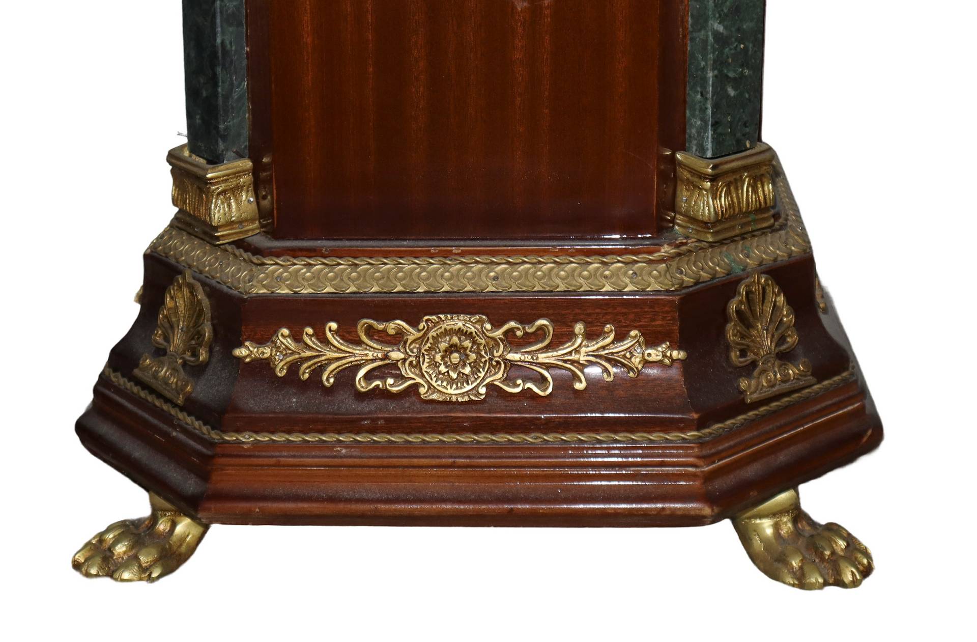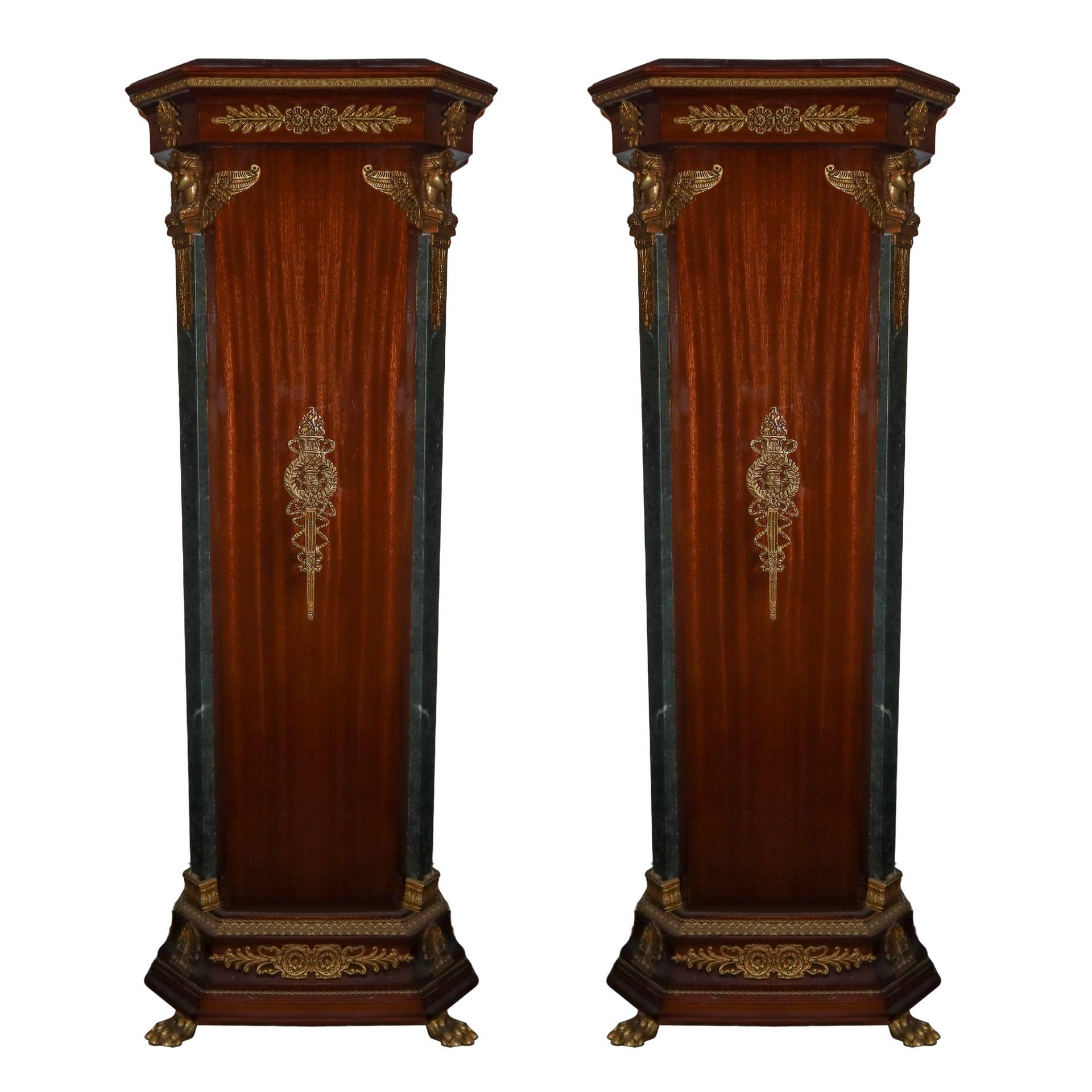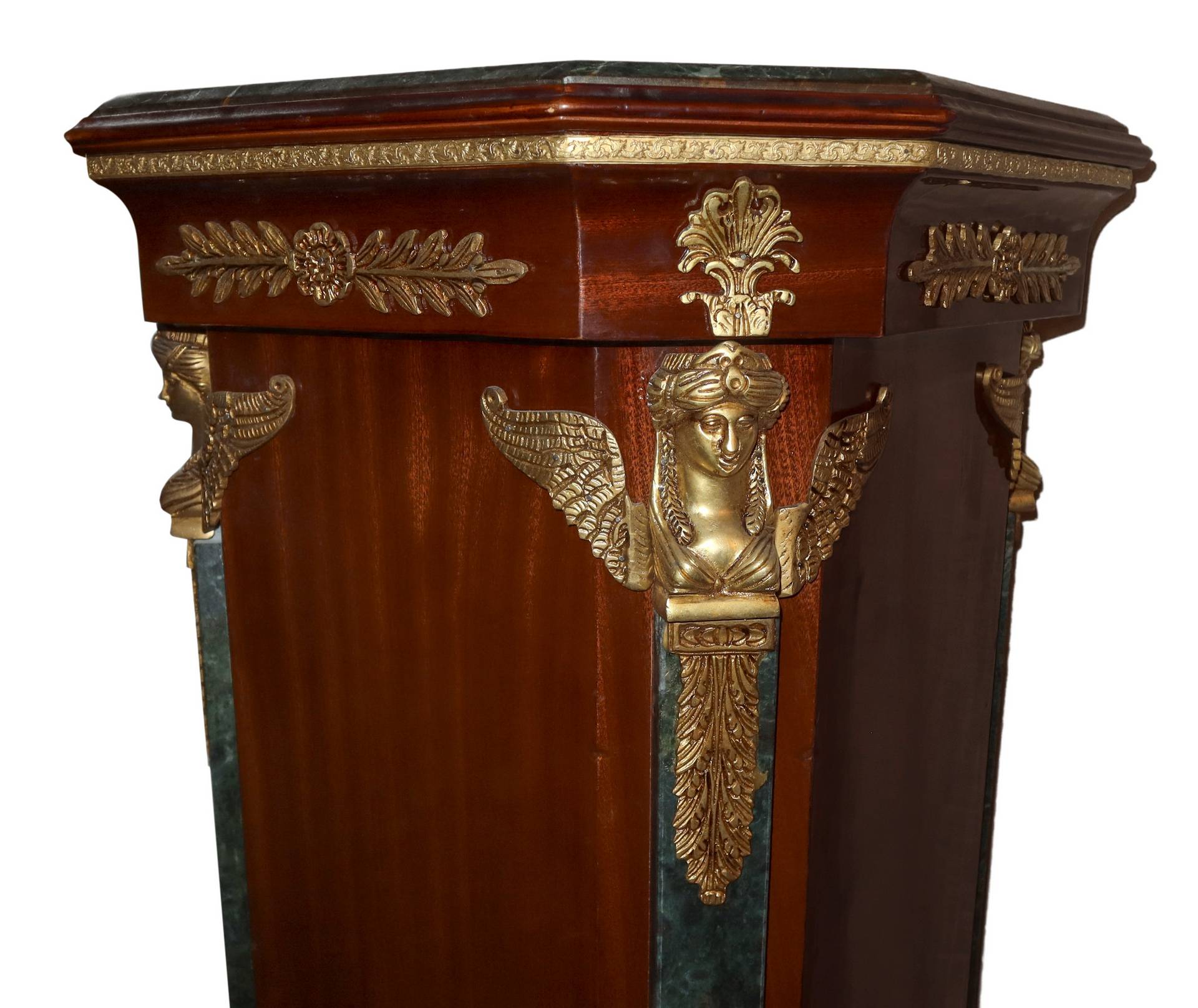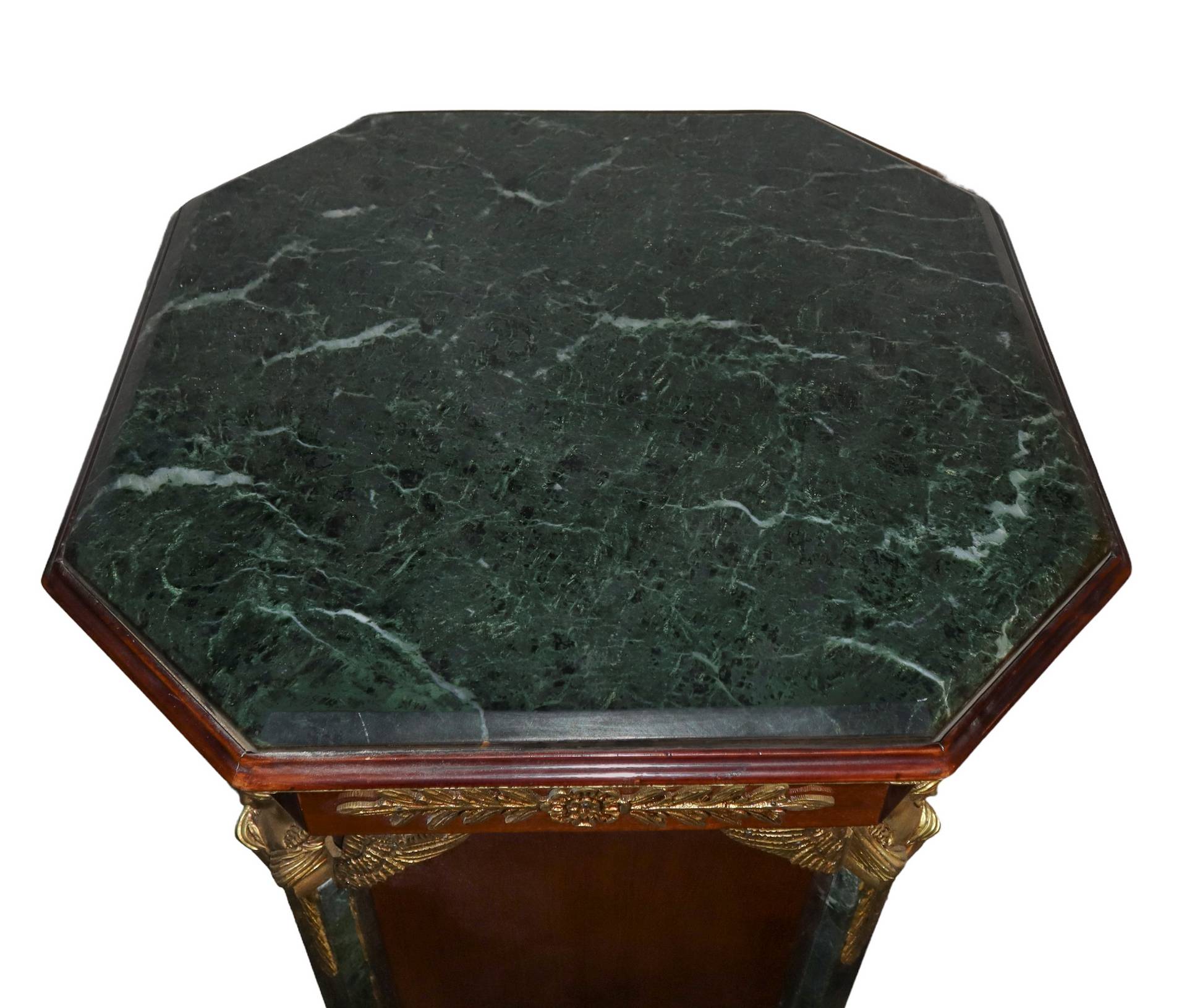Coppia di gueridon in legno di mogano stile Impero, 20° secolo H cm 130 ,piano 52 x 52 , base 45 x 45 Marmo verde alpi