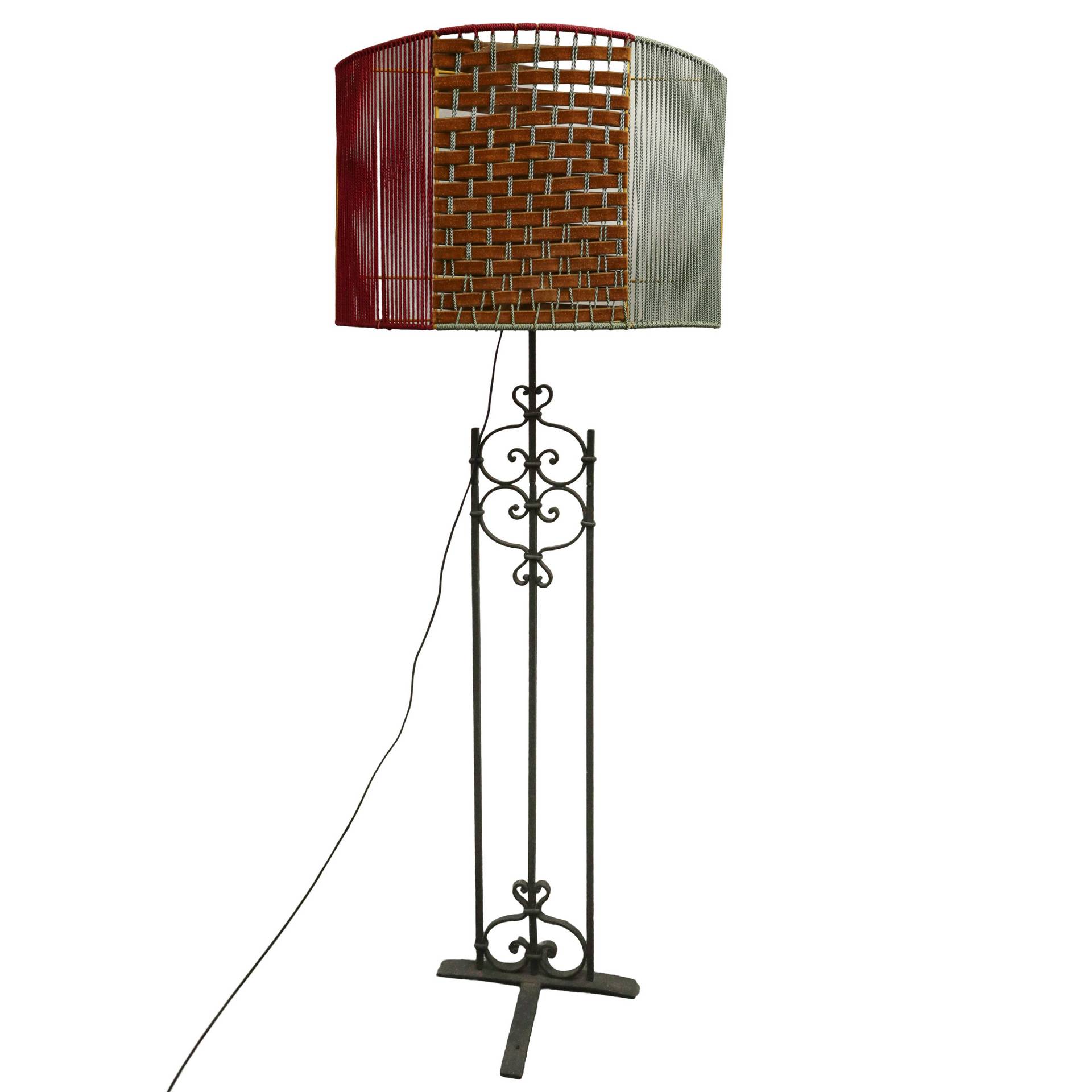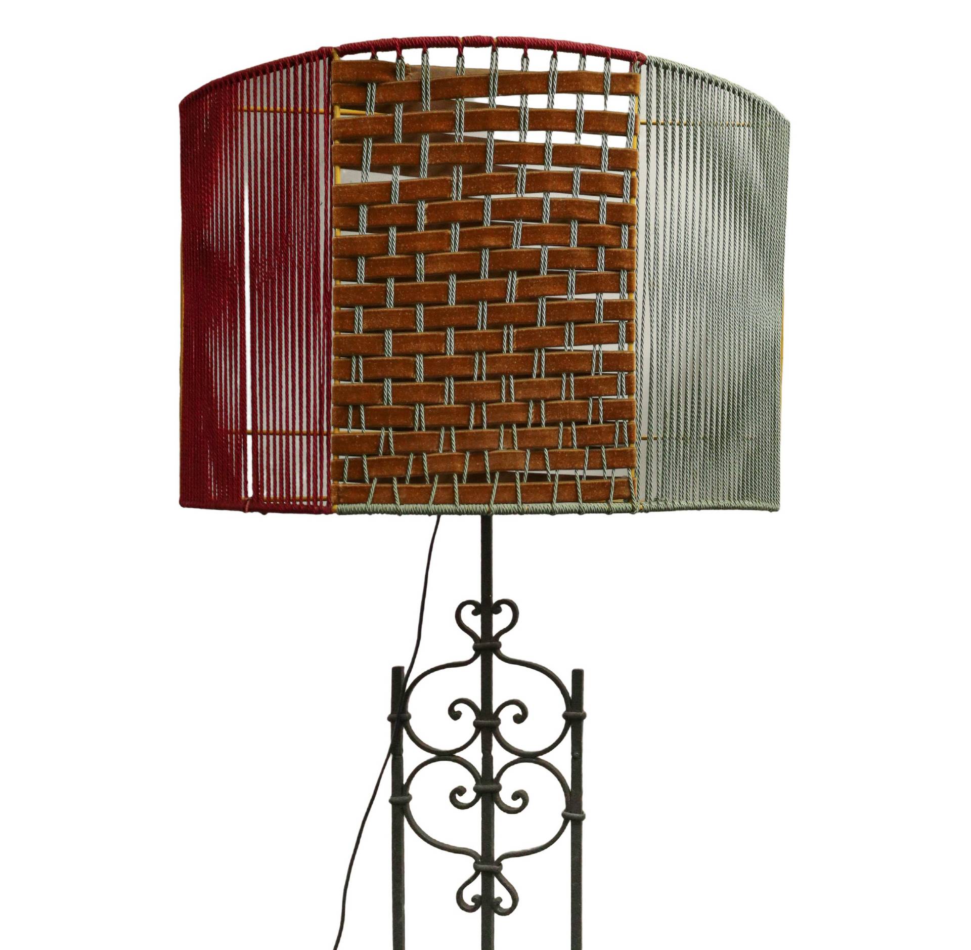Piantana in ferro battuto H cm 175 , base a croce 40x40 Ventola in belluto e cordoncinoVentola in belluto e cordoncino