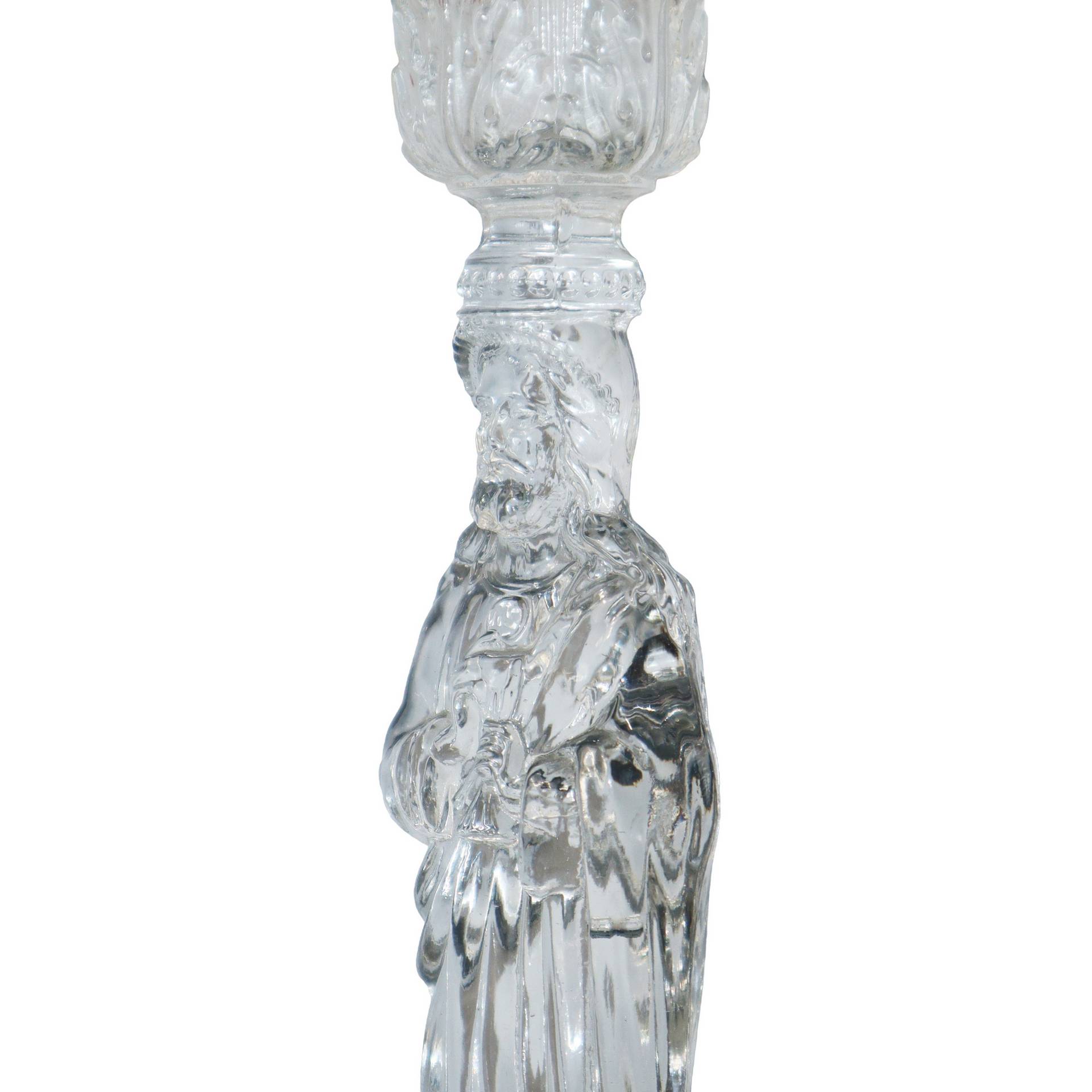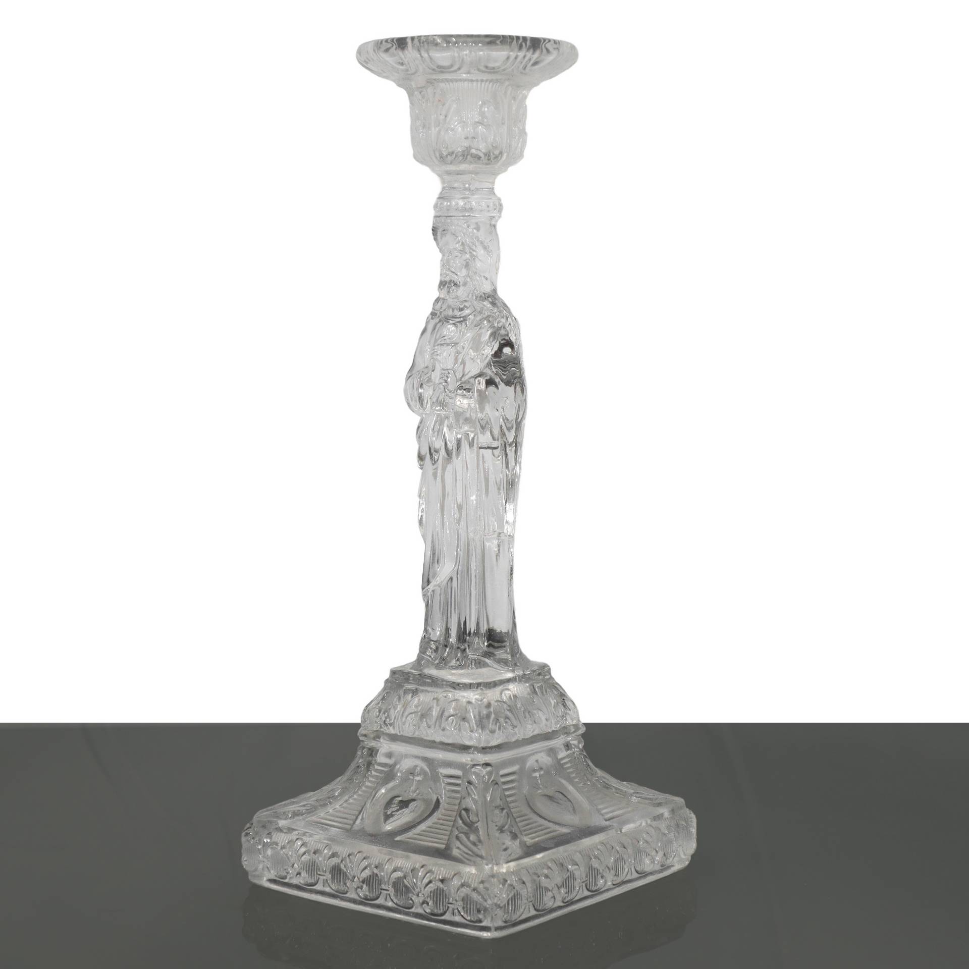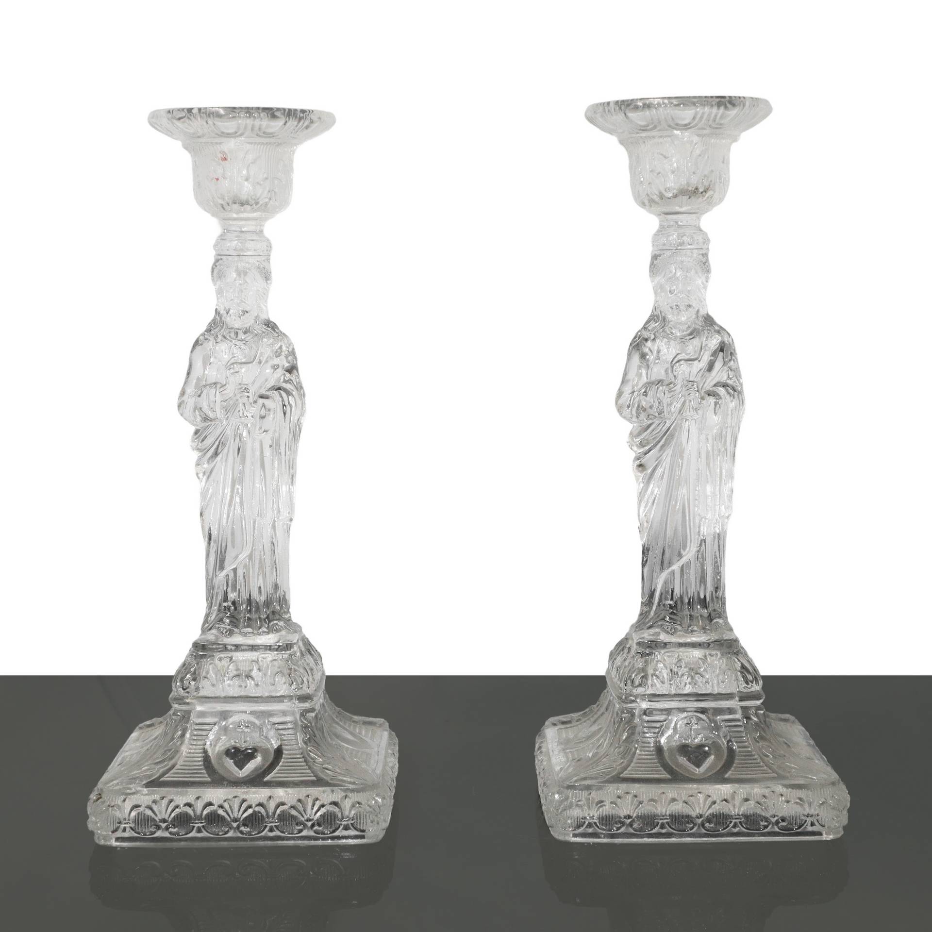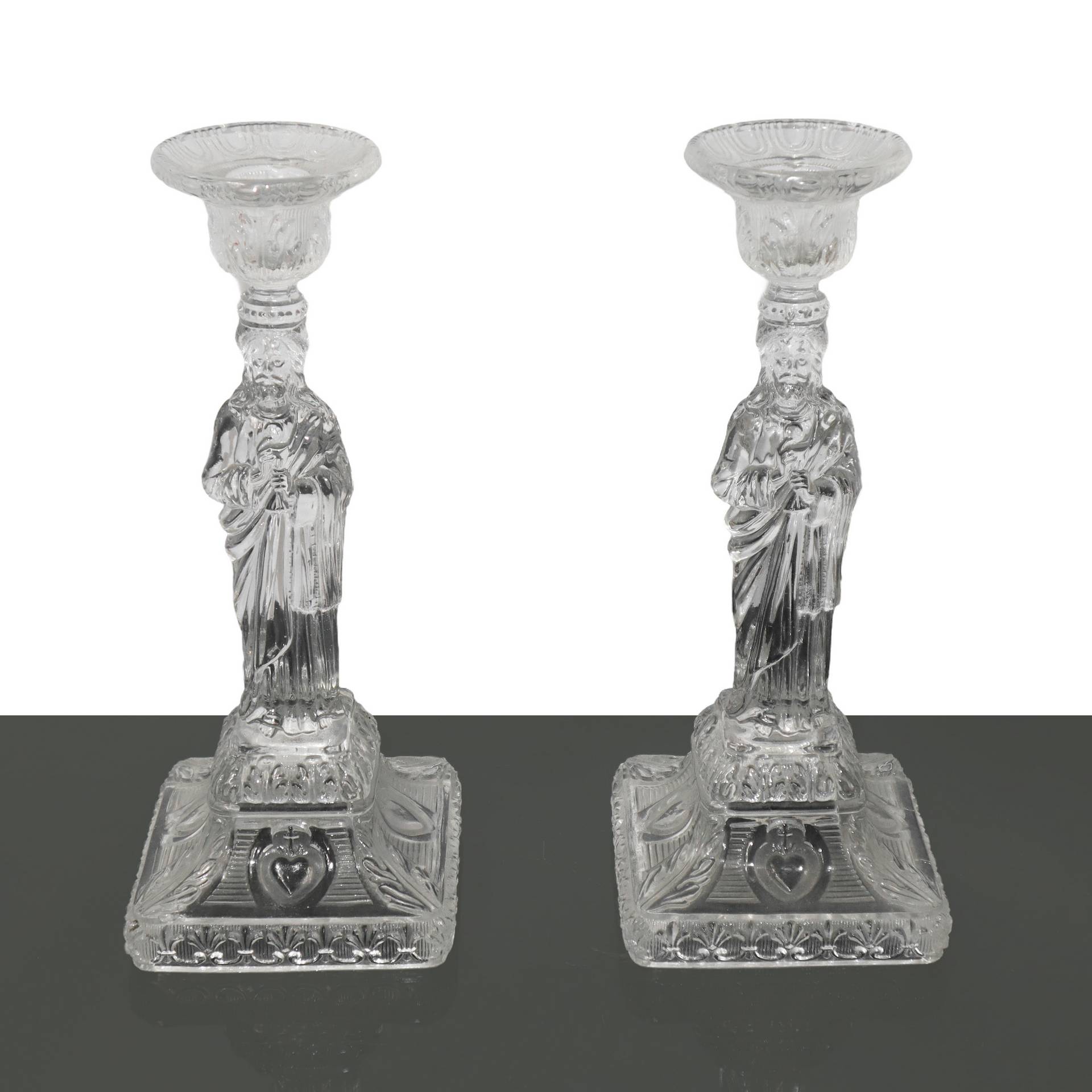 Coppia di candelieri in vetro monoforo , 20° secolo H cm 25x10 Base con Cuori Sacri.Base con Cuori Sacri.