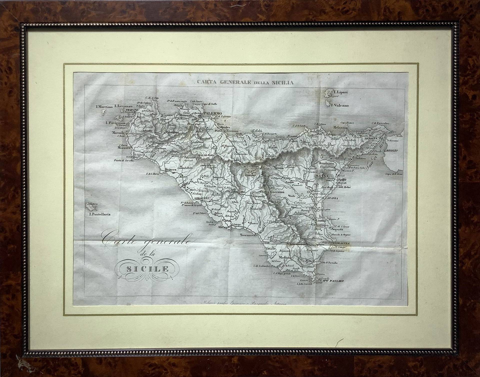 Carta generale della Sicilia, 1830 H cm 25,5x36 - in cornice H cm 41x51 Milano, Epimaco e Pasquale Artaria, tratto da “