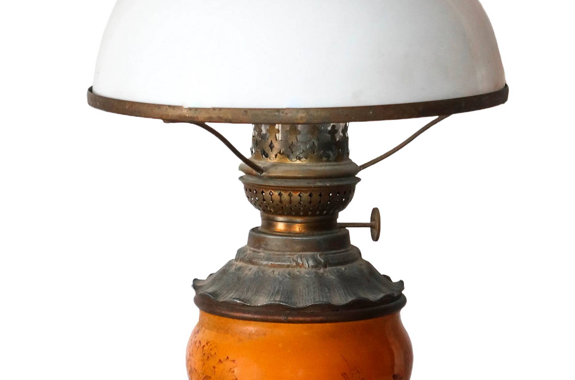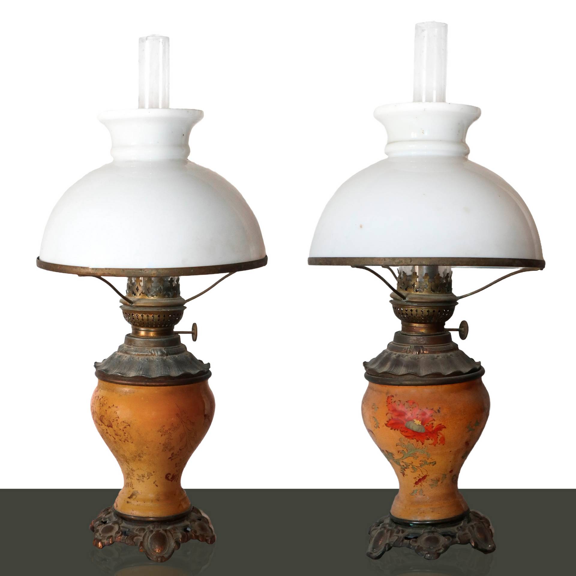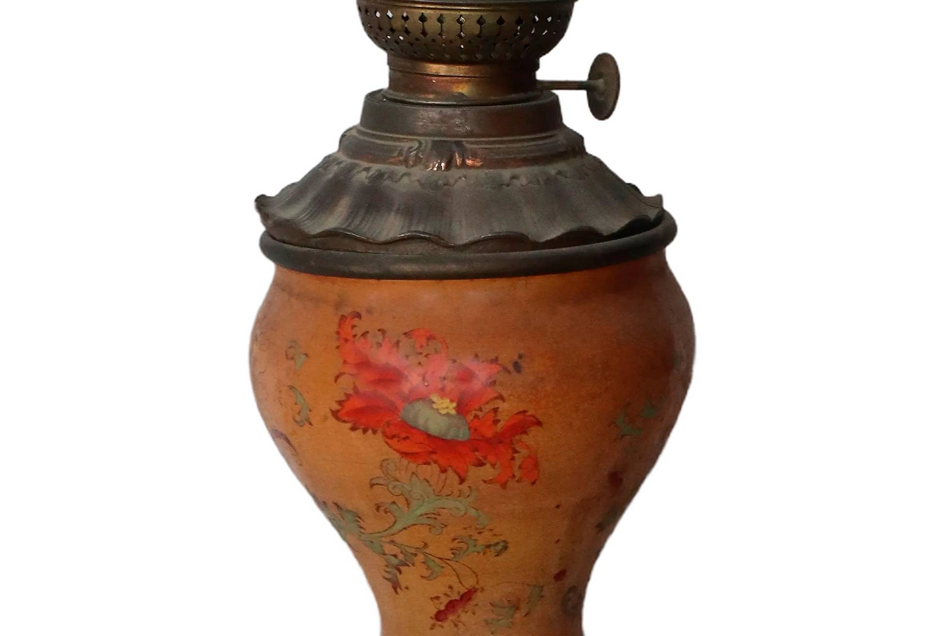 Coppia di lumi a petrolio con disegni floreali , nineteen° secolo