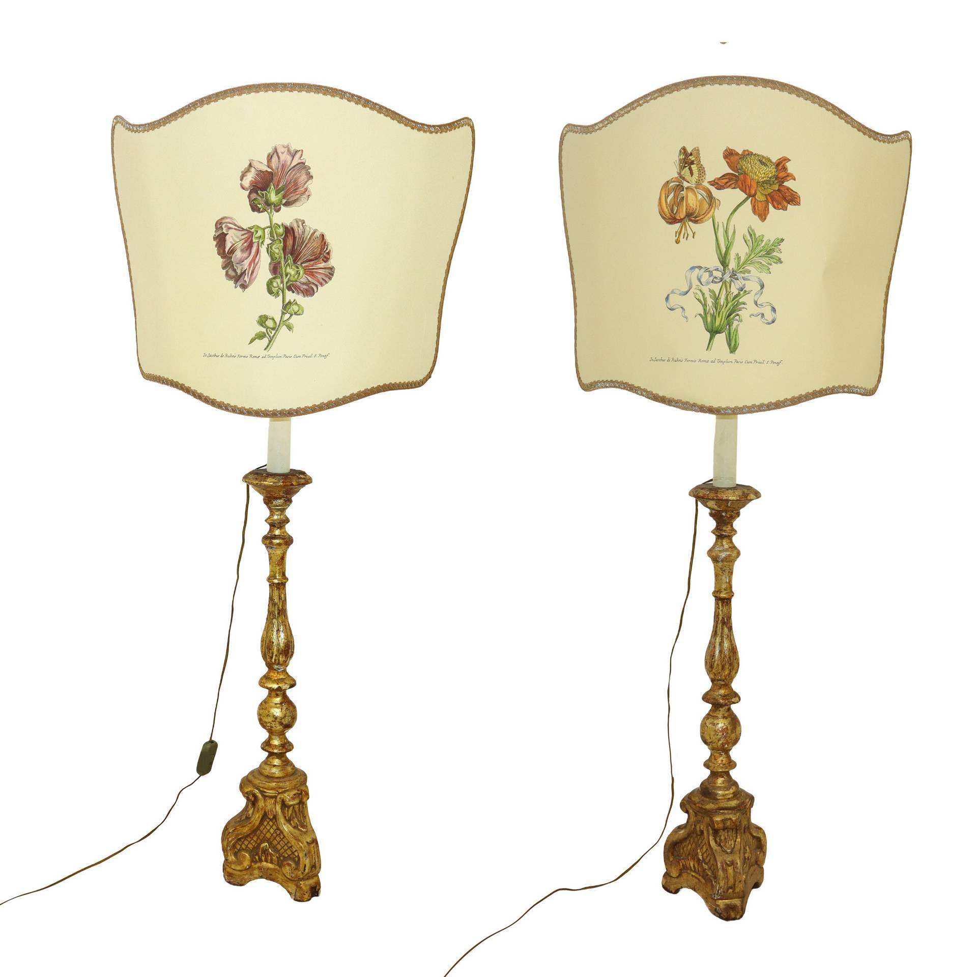 Coppia di candelieri in legno dorato H cm 79 - con ventole H cm 115