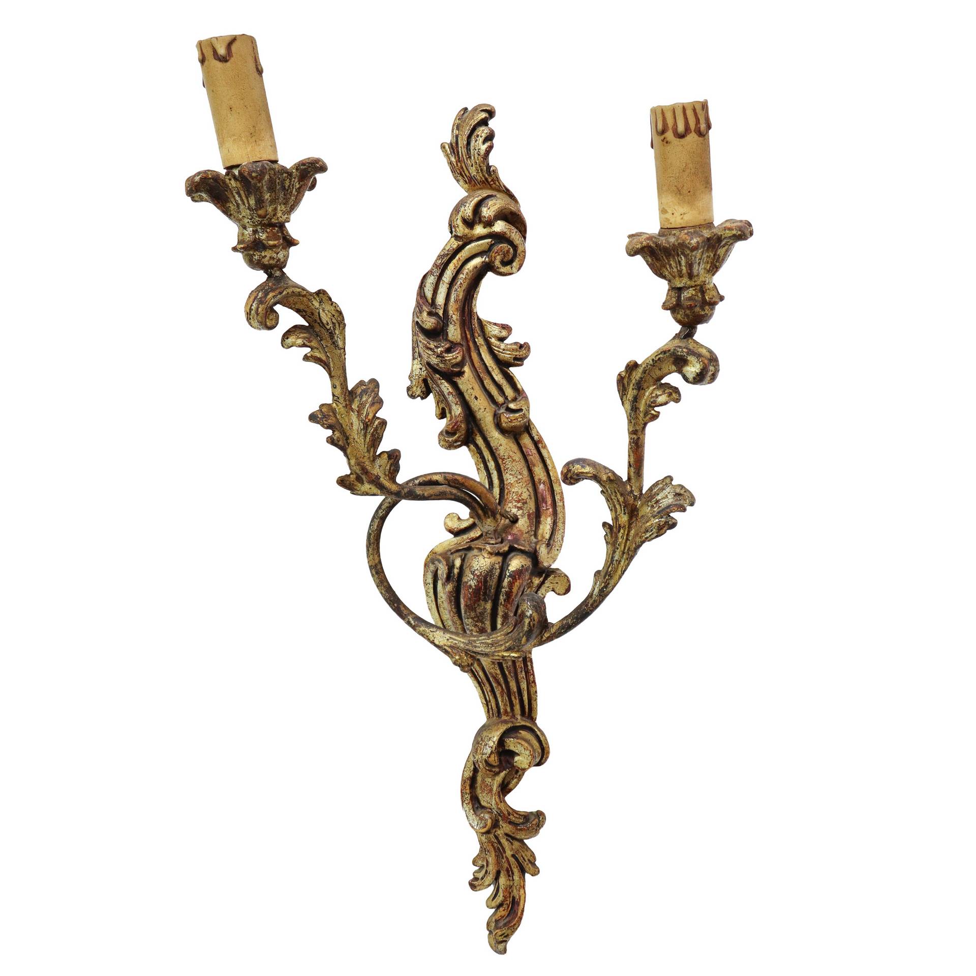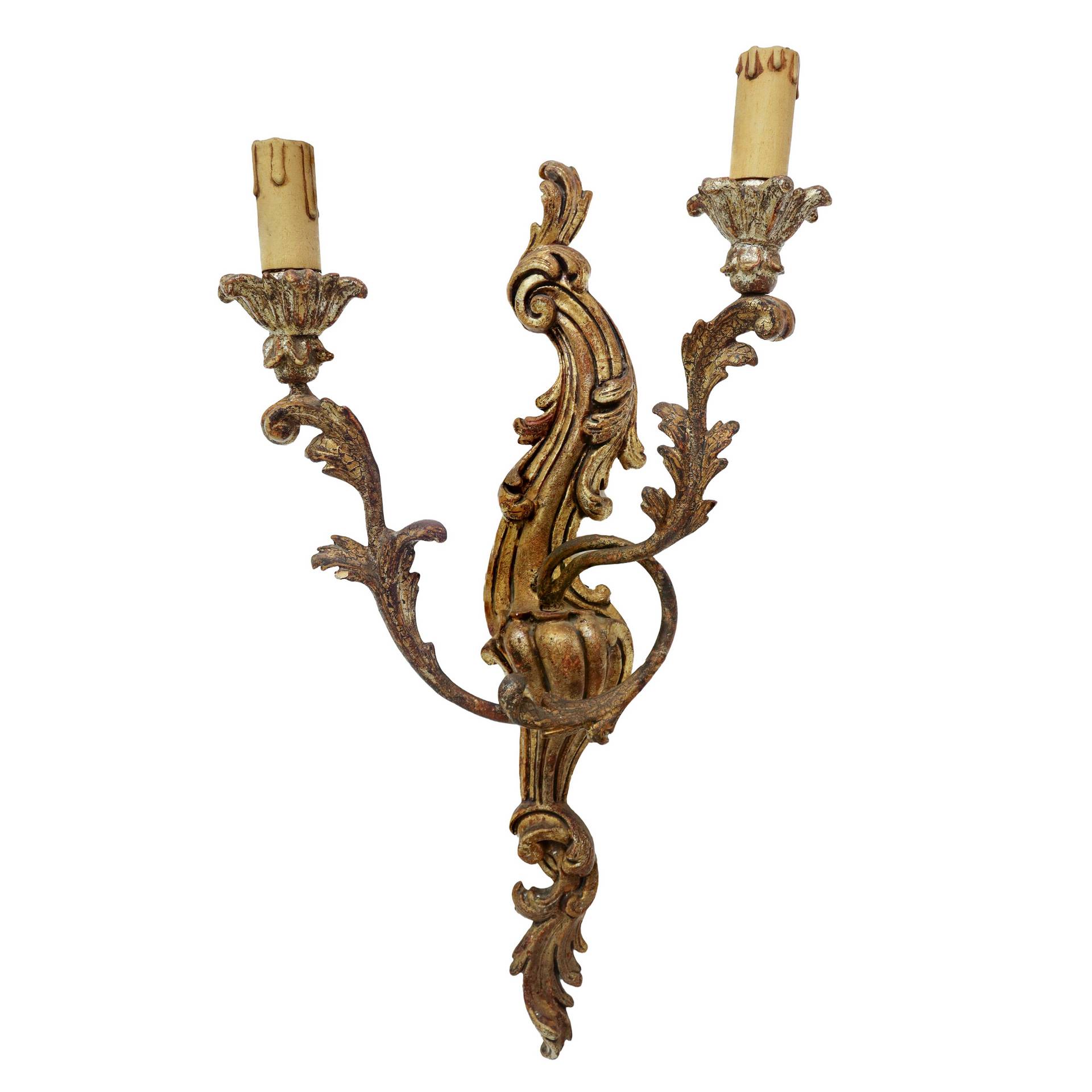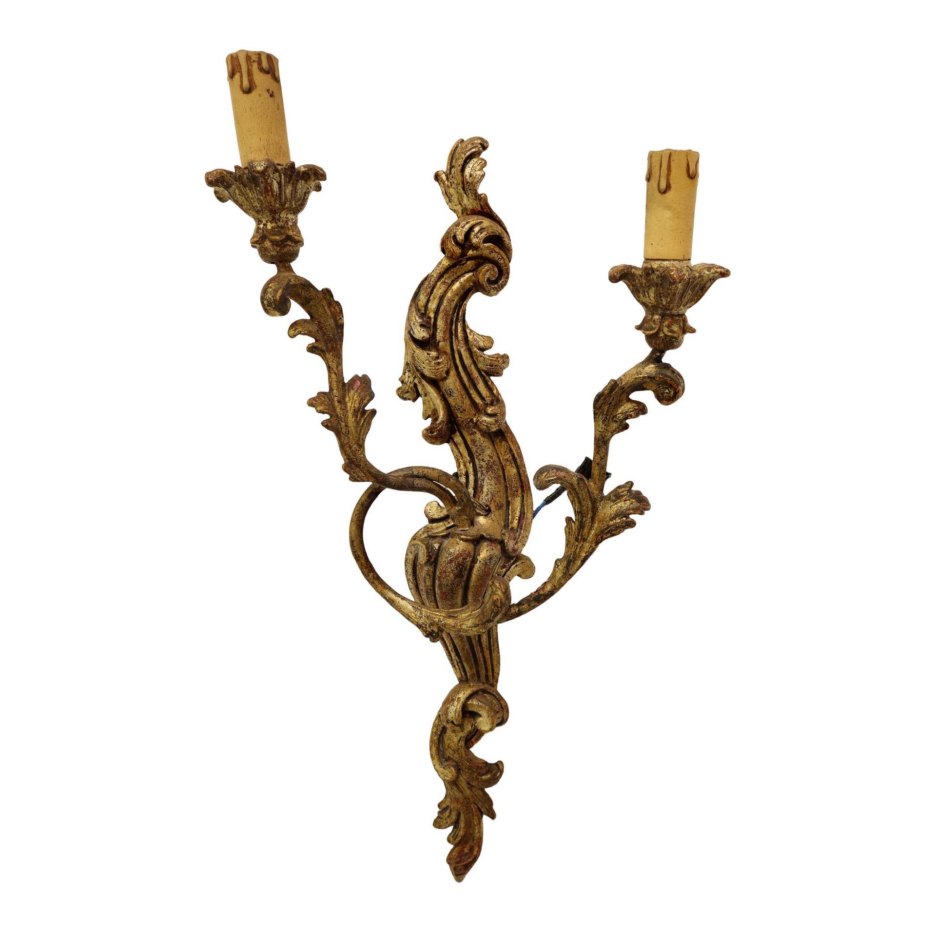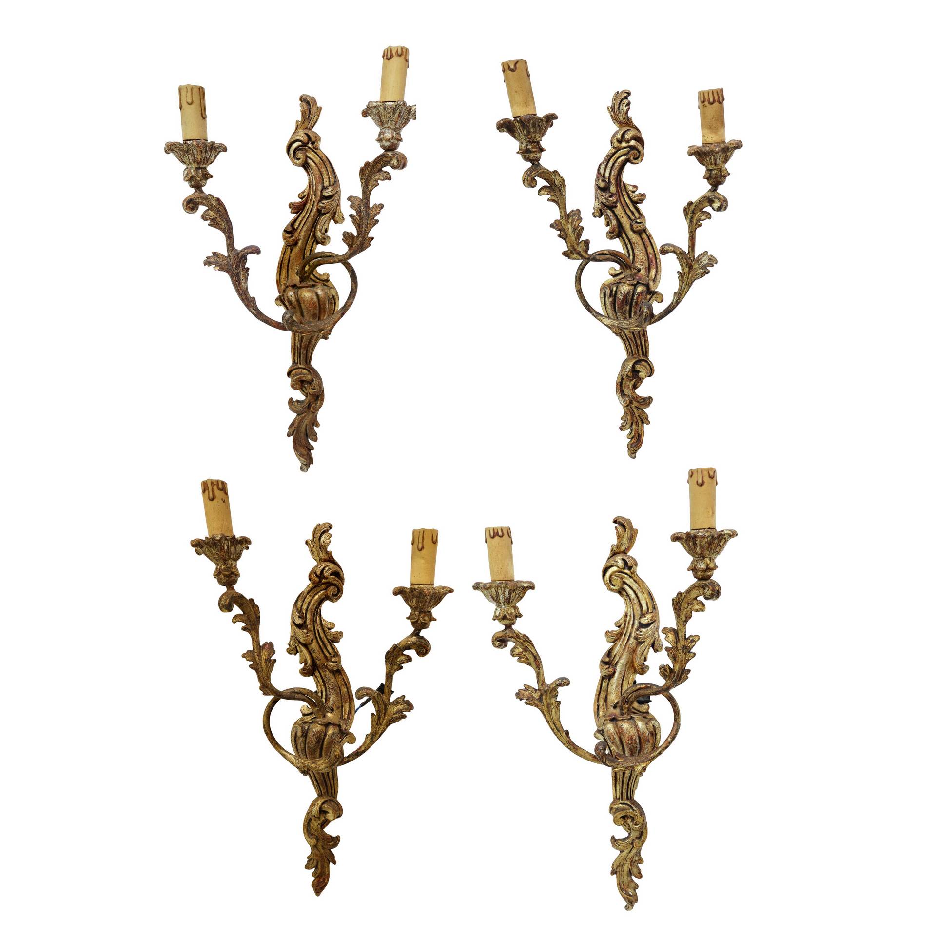 Lotto 199 | Gruppo di quattro appliques a due luci in legno dorato, Florence, 20° secolo