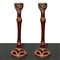 Coppia di candelieri monoforo in metallo laccato bordeaux, 20° secolo