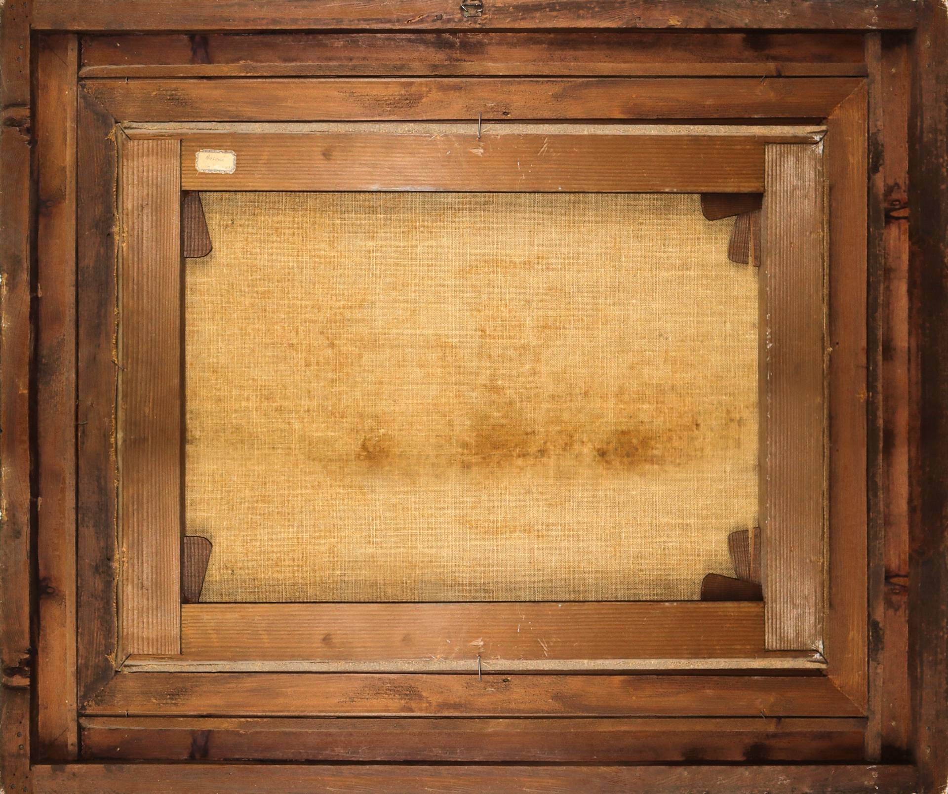 Paesaggio fluviale con personaggi e armenti, 20° secolo H cm 52x68,5 - in cornice H cm 76x91 Olio su tela Caduta di col