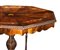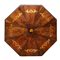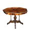 Tavolo ottagonale in legno di mogano con intarsi in legni chiari e a motivi floreali al piano, fine