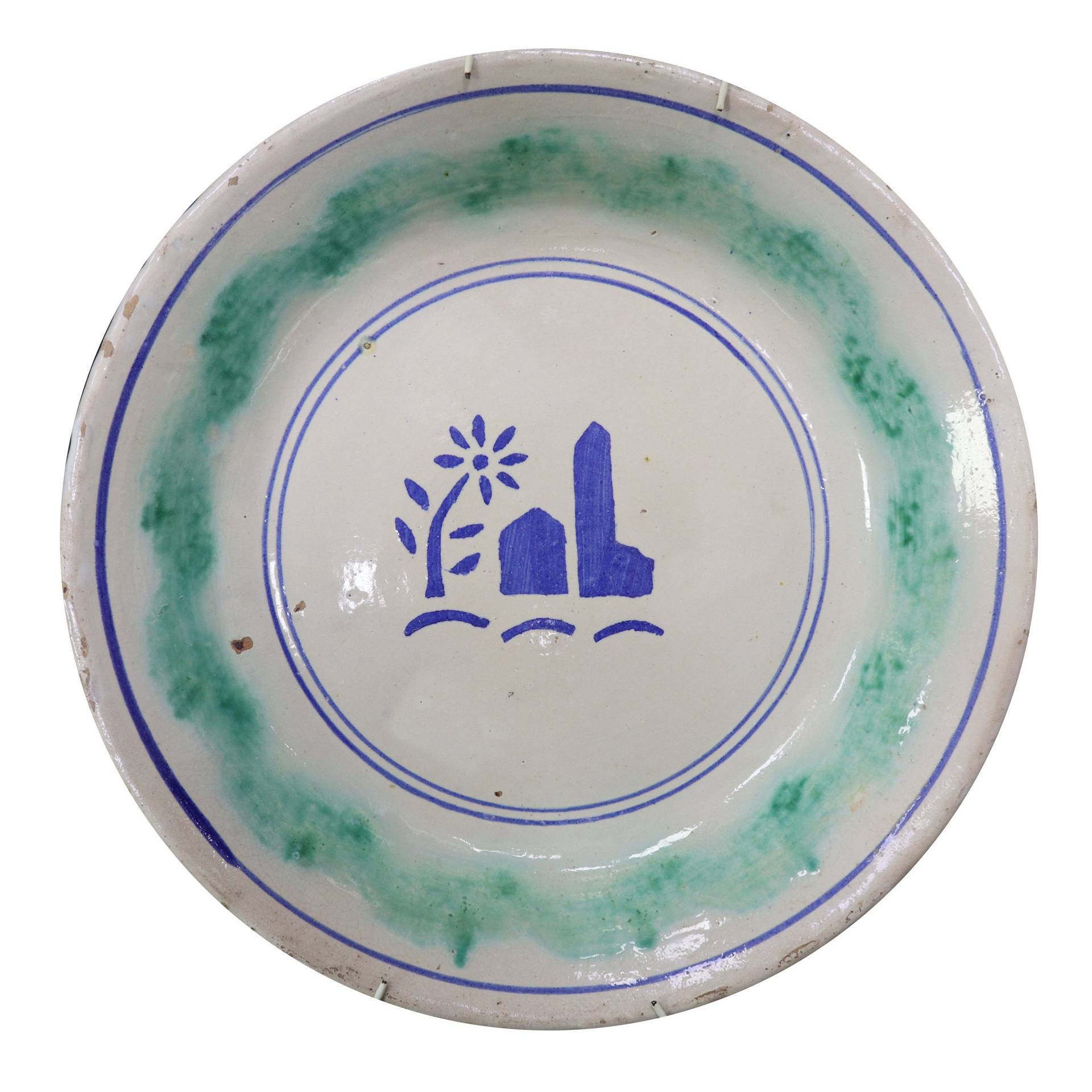 Piatto in maiolica di Caltagirone spugnato verde con casa