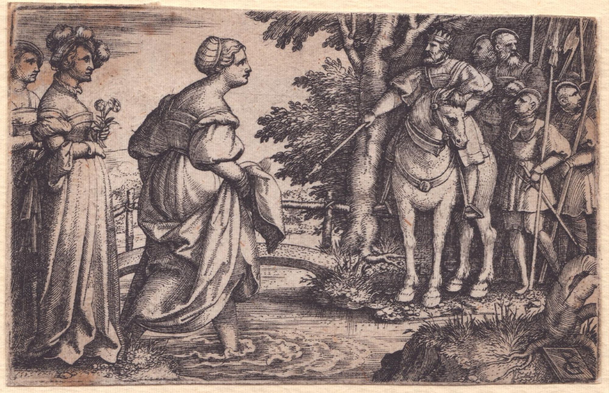 Georg Pencz (1500 ca. - 1550) La regina di Saba si rifiuta di attraversare il ponte di legno 1532 ca.