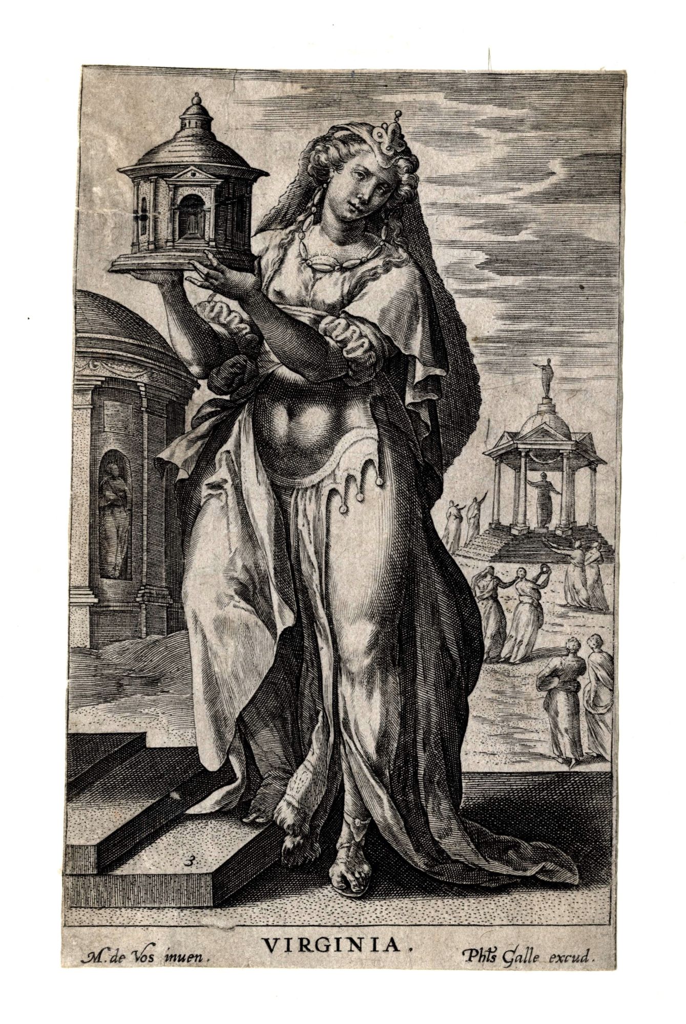 da Maarten de Vos. Bulino cm 9.4x15.4 Fresca impressione su carta vergata e filigranata, rifilata al margine lastra come d'uso. Condizioni generali buone con lieve assottigliamento agli angoli.