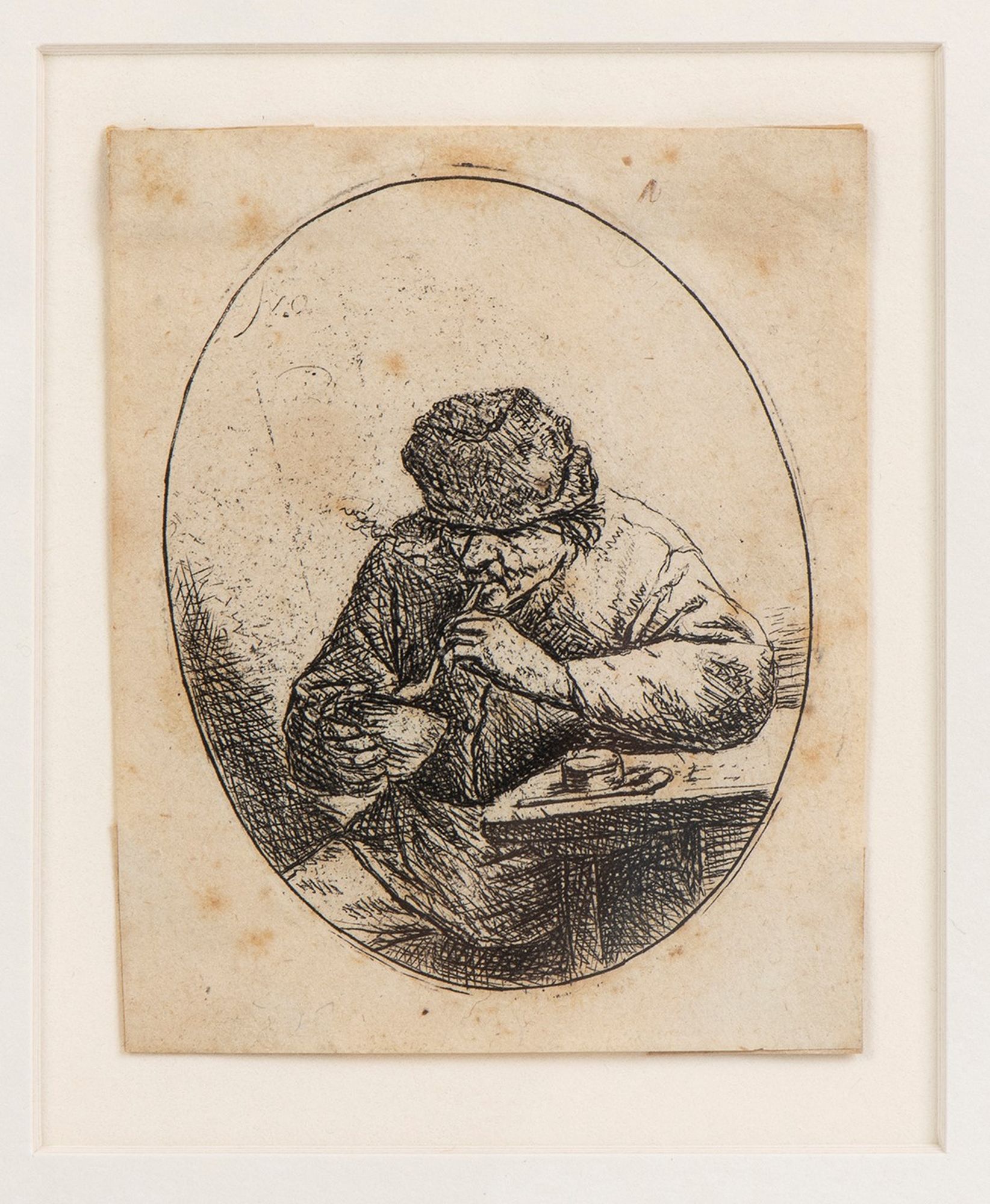 ADRIEN VAN OSTADE (Haarlem, 1610 -1685), ATTRIBUITO Un uomo che fuma seduto al tavolo