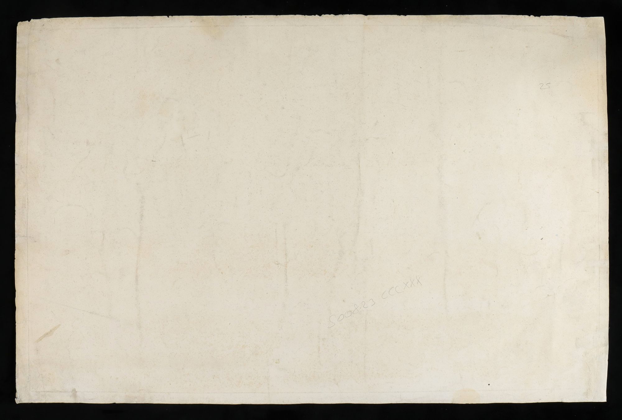 acquaforte, 468 x 720 mm. Esemplare controfondato, con alcune mancanze (sul margine superiore, in basso a sinistra e all'angolo superiore sinistro), restaurate. Carta leggermente ossidata con alcuni assottigliamenti. In generale in buone condizioni.