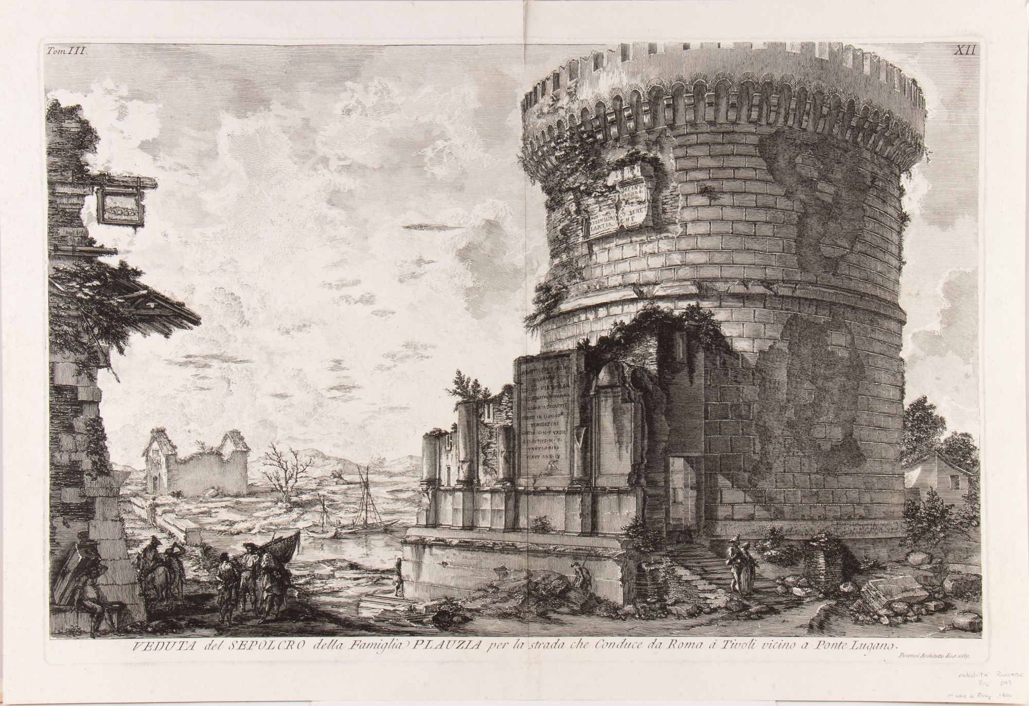 Veduta del Sepolcro della Famiglia Plauzia per la strada che Conduce da Roma à Ponte Luciano
