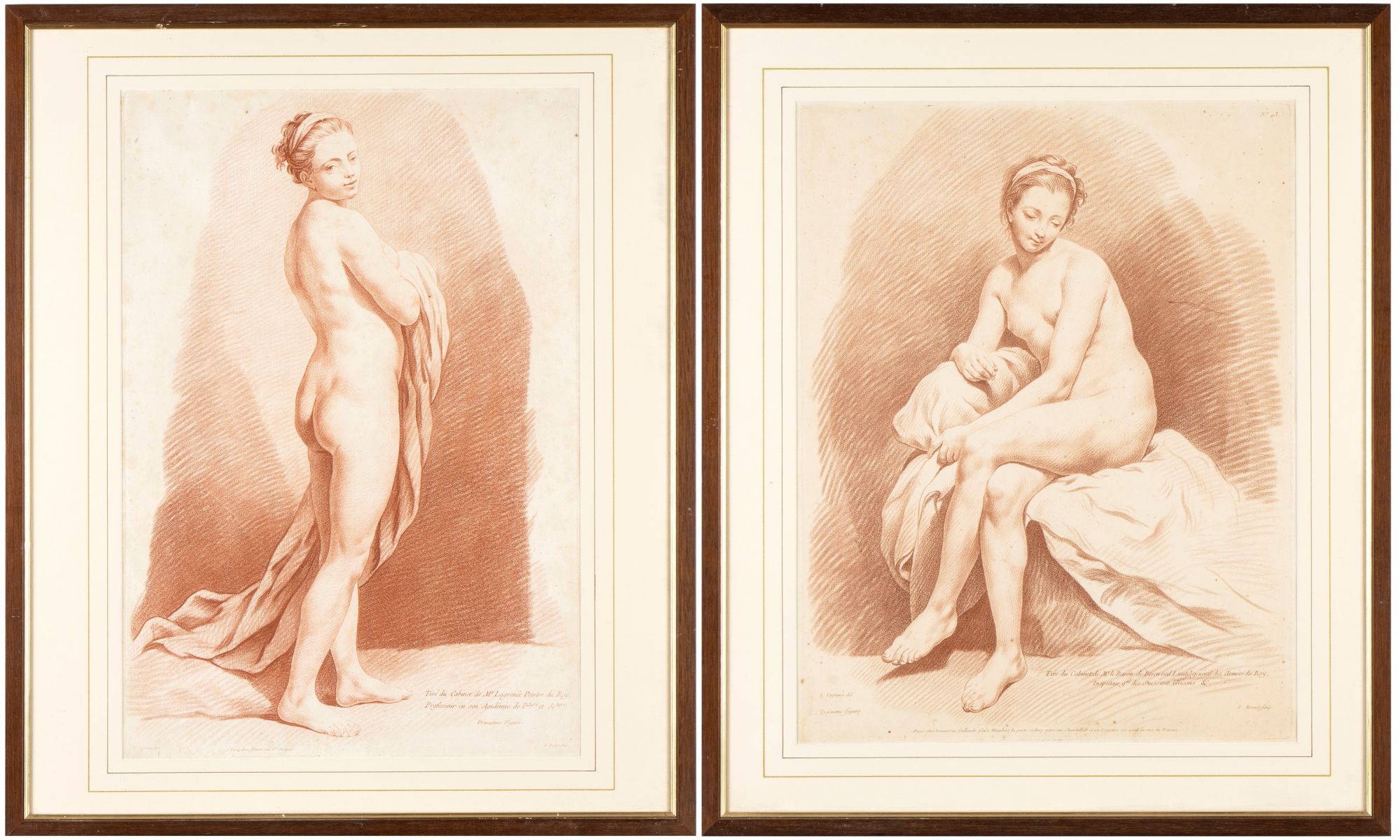 da Louis-Jean-François Lagrenée, manière de crayon, 53,6 x 36 cm cad. (lastra), bellissime impressioni, in ottimo stato, con cornici (67 x 56 cm). Le stampe non sono state esaminate fuori dalla cornice.